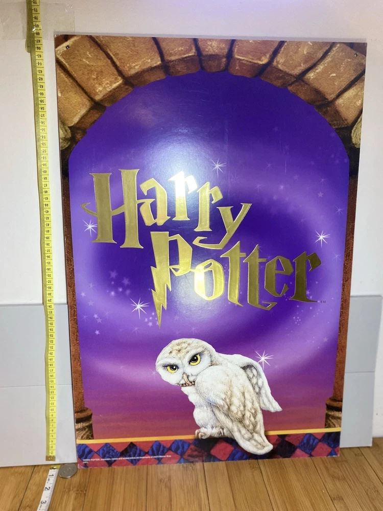 REALLY GOOD CONDITION NEVER USED WAS STORED SINCE GOT IT FROM PROMOTIONAL HARRY POTTER MARCHANDISE STORE PROVIDERS Crafted for the avid Harry Potter enthusiast, this vintage 2-sided retail bookstore display sign features the beloved character Hedwig. Dating back to 2001, it's a charming piece of memorabilia that celebrates the fantasy genre and the iconic franchise. This collectible is perfect for adding a touch of magic to your home library or as a unique gift for the Harry Potter collector in your life. The sign showcases intricate artwork that captures the essence of Hedwig, making it a standout addition to any collection of fantasy, mythical, or magical themed items. Whether it's showcased in your personal study or nestled amongst other Harry Potter treasures, this sign is sure to evoke the wonder and excitement of the wizarding world.