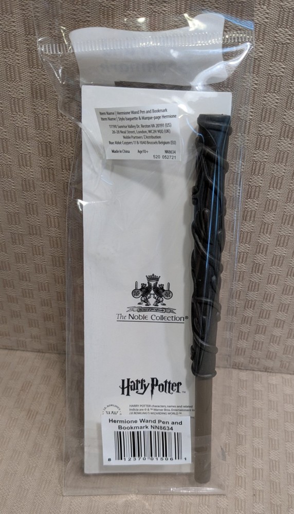🪄✨ Take a little piece of Hogwarts with you wherever you write! This enchanting set from The Noble Collection includes a wand-shaped pen inspired by Hermione Granger’s very own wand—perfect for jotting notes, drafting spells, or signing important Ministry documents. The coordinating bookmark features Hermione herself, ready to save your place in any book (magical or Muggle). 🌟 Magical Details : Official Wizarding World collectible by The Noble Collection Hermione wand pen with detailed sculpting for a true wand-like feel Character bookmark with colorful Hermione artwork Brand new – never opened, straight from the wizarding shelves Perfect for fans, readers, or collectors seeking functional magic Great for journals, Hogwarts homework, or everyday writing 🪄 Whether you’re studying for O.W.L.s or just making a grocery list, this set adds a touch of Hogwarts charm to every word you write.