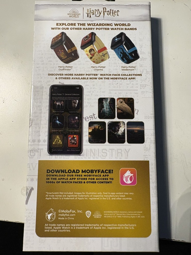The product is a Harry Potter Hog warts Watch Band designed for smart phones and Apple Watches. It features a unique design inspired by the Harry Potter series and is compatible with Apple Watches running Apple Watch OS. This band allows users to personalize their smart devices with a touch of wizardry and fandom, making it a stylish and functional accessory for fans of the popular book and movie franchise.