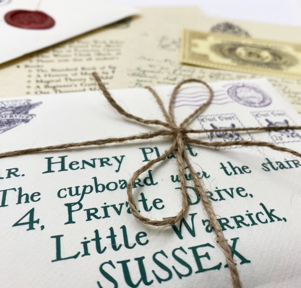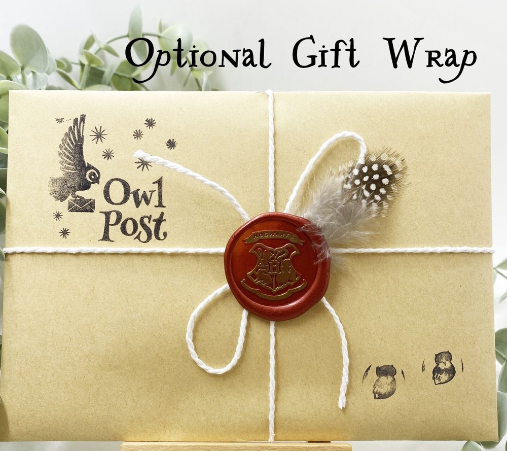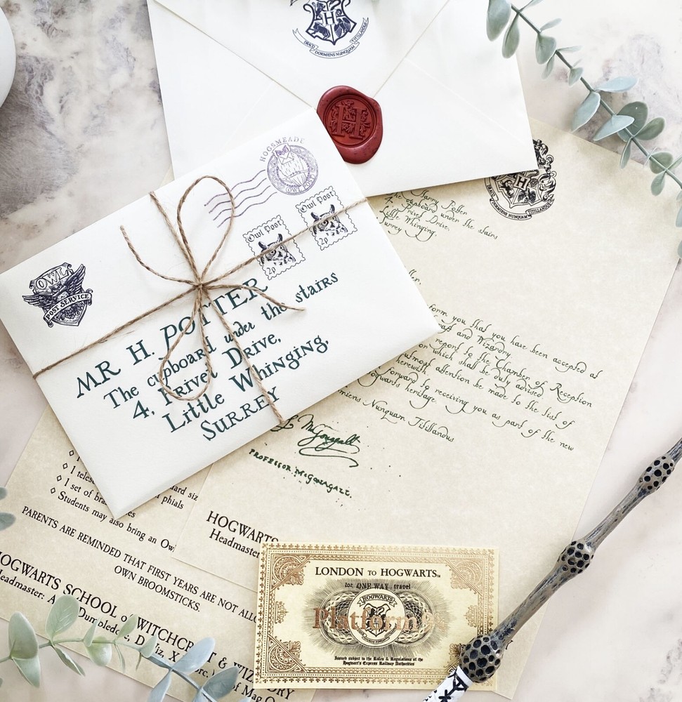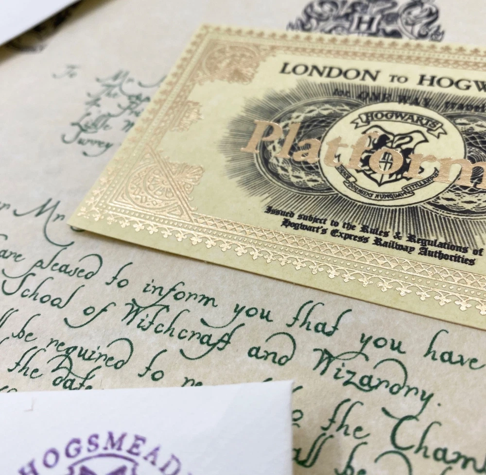 Personalised Harry Potter Hogwarts Wizard School Acceptance Letter Gift Bring a little magic into someone’s day with this beautifully handcrafted Personalised Wizard School Acceptance Letter, complete with custom name and address, wax seal, and special extras — the perfect keepsake for fans of the wizarding world! Each letter is carefully made using premium materials to create a truly special and memorable gift for children and adults alike. What’s Included ✔️ Personalised Wizard or Witch School Acceptance Letter (printed in green ink on 95gsm premium parchment paper) ✔️ Personalised Envelope, featuring owl post stamps and tied with rustic twine ✔️ Embossed Express Train Ticket (gold-foiled and enclosed in the envelope) ✔️ Real Wax Seal stamped with an ornate letter "H" ✔️ List of School Supplies & Requirements for First Year Optional Add-Ons Custom Gift Tickets (choose one): Studio Tour Ticket Universal Orlando Wizarding World Ticket Cursed Child Theatre Ticket Gift Wrapping: Beautifully wrapped with magical extras (see photos for examples). How to Personalise Your Letter Please add the following details in the Personalisation box when ordering: Envelope: Full Name (e.g., Mr J. Smith) Room (e.g., The room opposite the stairs) First line of address (e.g., 4, Private Road) Second line (e.g., Little Hampton) Third line (e.g., Kent) How you’d like the name to appear (e.g., "Dear Mr Smith") Optional Gift Ticket: Name, Date, Time & Duration (if needed) Example Personalisation Format: Mr J. Smith The room opposite the stairs 4, Private Road Little Hampton Kent Dear Mr Smith Note: If you prefer a movie-style replica letter with Harry’s name and address, just message me with "movie replica." If only a name is provided, I will default to using Harry’s address. Please note: The letter will be sent to you (the buyer), not the personalised address on the envelope. If you would like it posted directly to the recipient, please adjust the shipping address at checkout. All orders are sent in plain, board-backed envelopes to keep the surprise safe until you're ready to present it! Delivery Options Perfect for: Magical birthday surprises Wizard-themed parties Fantasy gifts for children & adults Keepsake collectibles for fans If you have any questions or special requests, feel free to message me — I’m always happy to help!