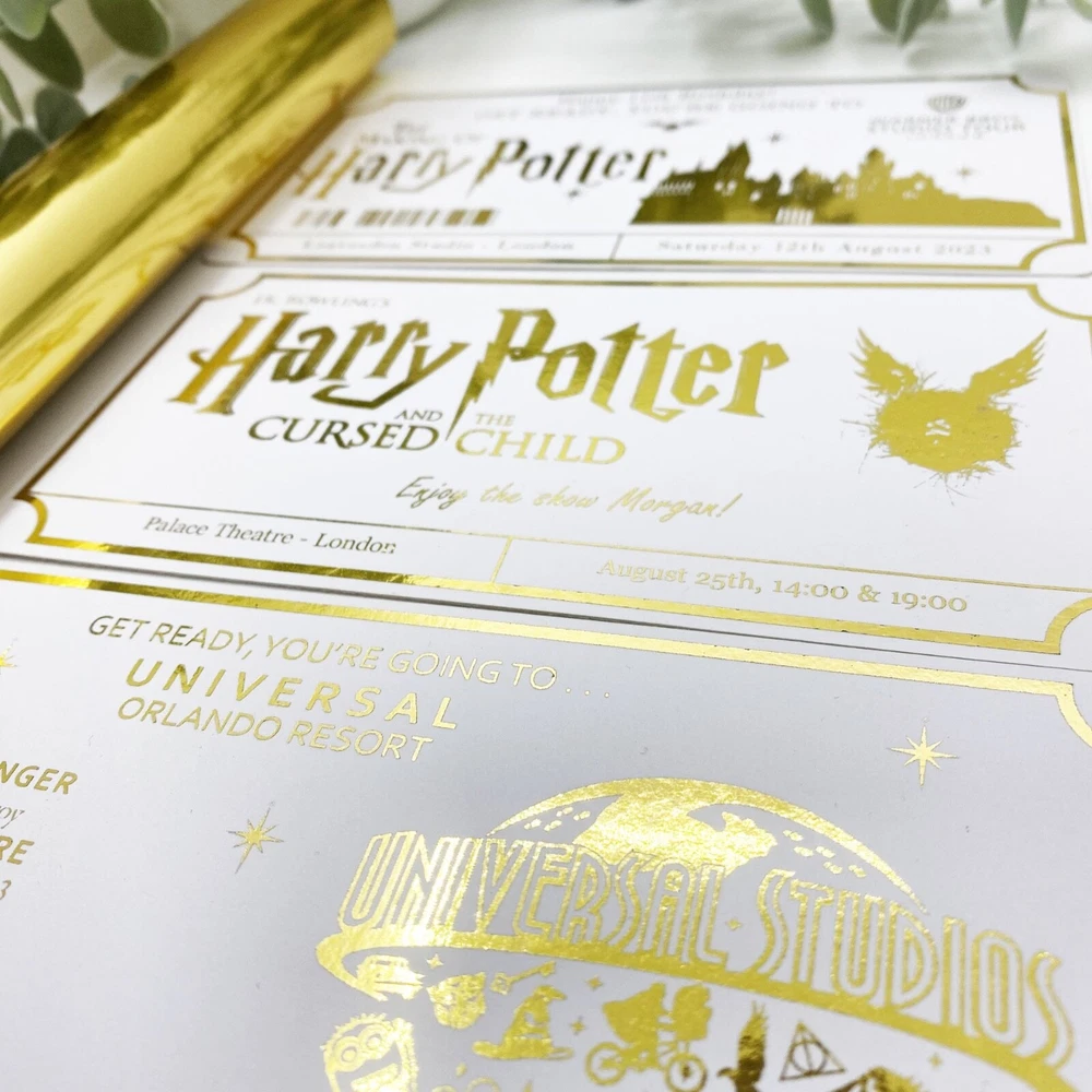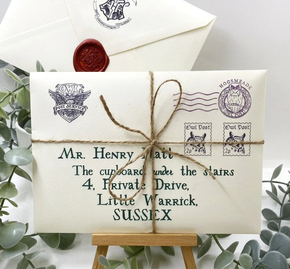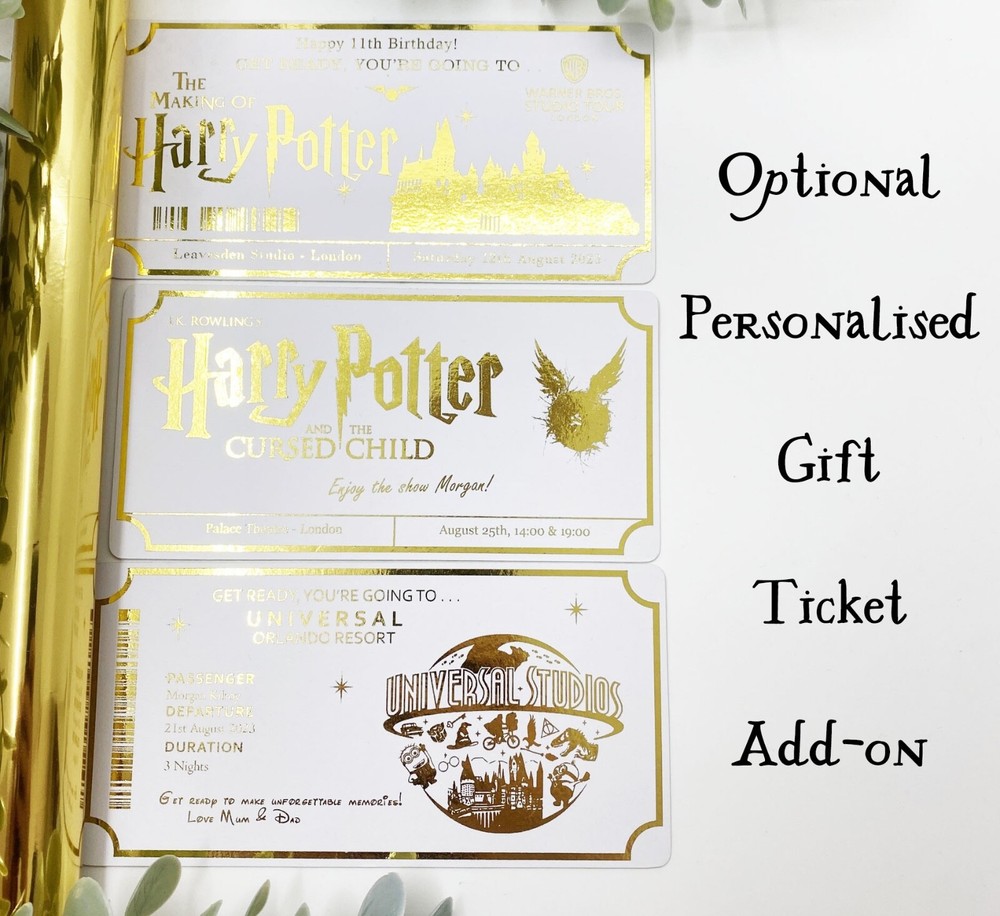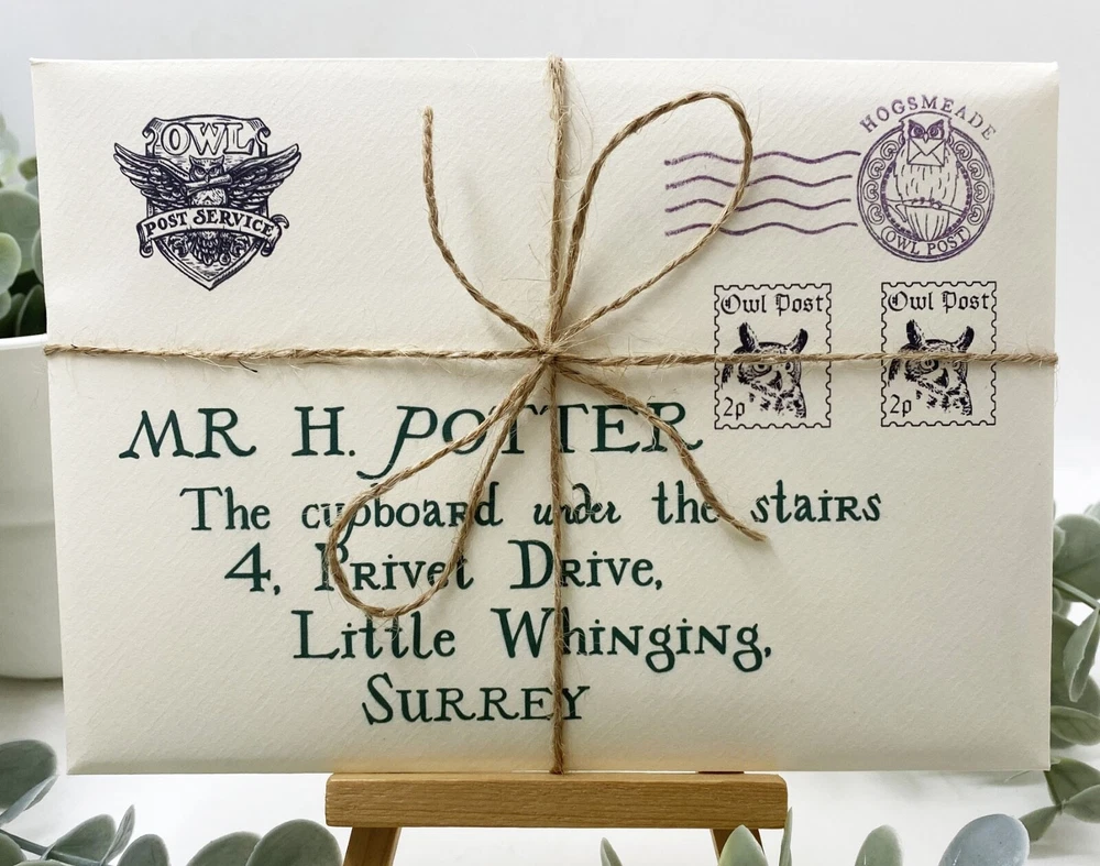 Personalised Harry Potter Hogwarts Wizard School Acceptance Letter Gift Bring a little magic into someone’s day with this beautifully handcrafted Personalised Wizard School Acceptance Letter, complete with custom name and address, wax seal, and special extras — the perfect keepsake for fans of the wizarding world! Each letter is carefully made using premium materials to create a truly special and memorable gift for children and adults alike. What’s Included ✔️ Personalised Wizard or Witch School Acceptance Letter (printed in green ink on 95gsm premium parchment paper) ✔️ Personalised Envelope, featuring owl post stamps and tied with rustic twine ✔️ Embossed Express Train Ticket (gold-foiled and enclosed in the envelope) ✔️ Real Wax Seal stamped with an ornate letter "H" ✔️ List of School Supplies & Requirements for First Year Optional Add-Ons Custom Gift Tickets (choose one): Studio Tour Ticket Universal Orlando Wizarding World Ticket Cursed Child Theatre Ticket Gift Wrapping: Beautifully wrapped with magical extras (see photos for examples). How to Personalise Your Letter Please add the following details in the Personalisation box when ordering: Envelope: Full Name (e.g., Mr J. Smith) Room (e.g., The room opposite the stairs) First line of address (e.g., 4, Private Road) Second line (e.g., Little Hampton) Third line (e.g., Kent) How you’d like the name to appear (e.g., "Dear Mr Smith") Optional Gift Ticket: Name, Date, Time & Duration (if needed) Example Personalisation Format: Mr J. Smith The room opposite the stairs 4, Private Road Little Hampton Kent Dear Mr Smith Note: If you prefer a movie-style replica letter with Harry’s name and address, just message me with "movie replica." If only a name is provided, I will default to using Harry’s address. Please note: The letter will be sent to you (the buyer), not the personalised address on the envelope. If you would like it posted directly to the recipient, please adjust the shipping address at checkout. All orders are sent in plain, board-backed envelopes to keep the surprise safe until you're ready to present it! Delivery Options Perfect for: Magical birthday surprises Wizard-themed parties Fantasy gifts for children & adults Keepsake collectibles for fans If you have any questions or special requests, feel free to message me — I’m always happy to help!