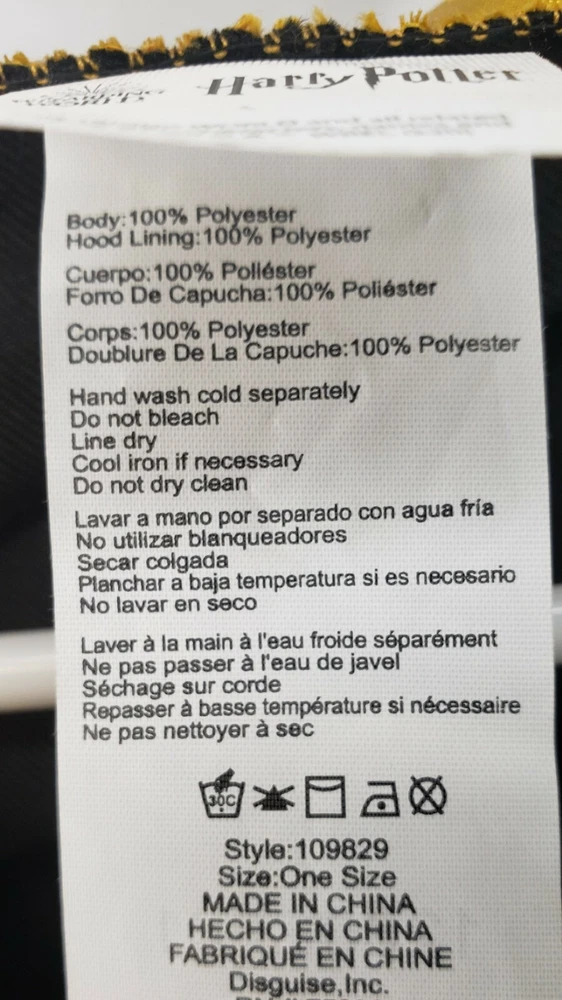 Create a truly magical experience when you step out into the wizardly world. Become part of the magical and spellbinding universe when you dress up in this Child's Harry Potter Classic Hogwarts Robe. This Classic Hogwarts Robe is the perfect gift Hogwarts crest on front of robe Gold satin lined hood Clasp velcro closure on front of robe Officially Licensed Packaging: Disguise-B160Ng-15"X11.25"