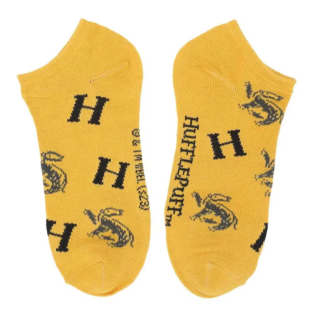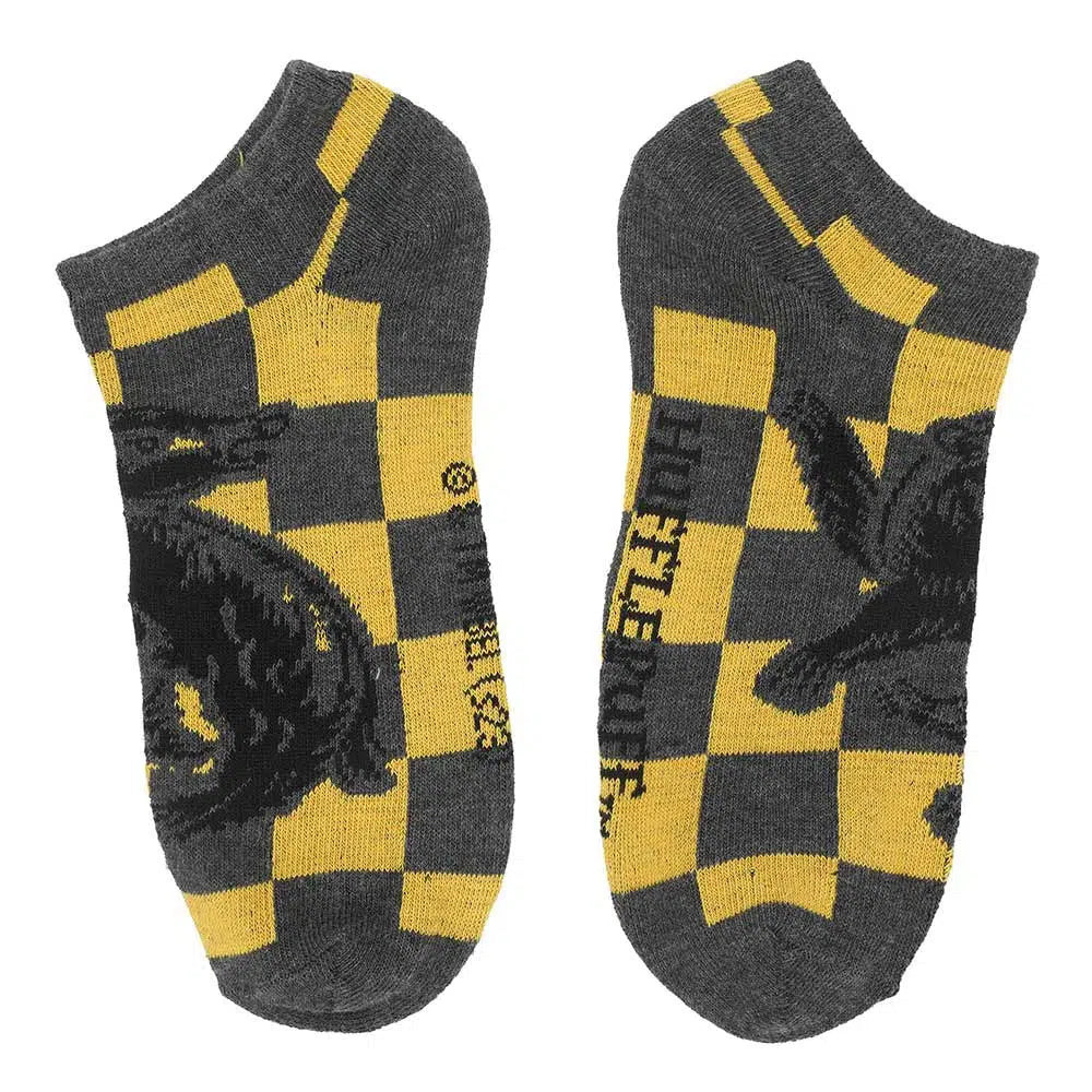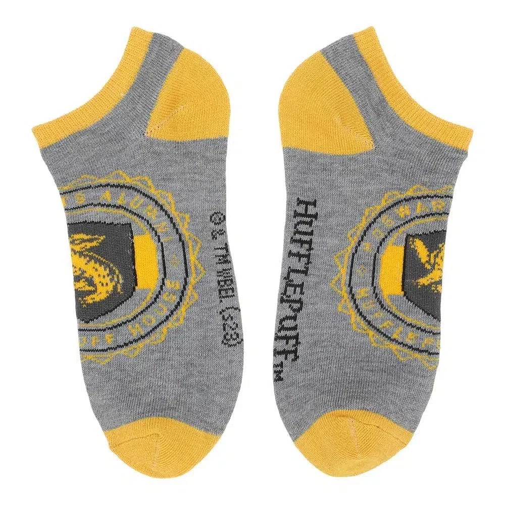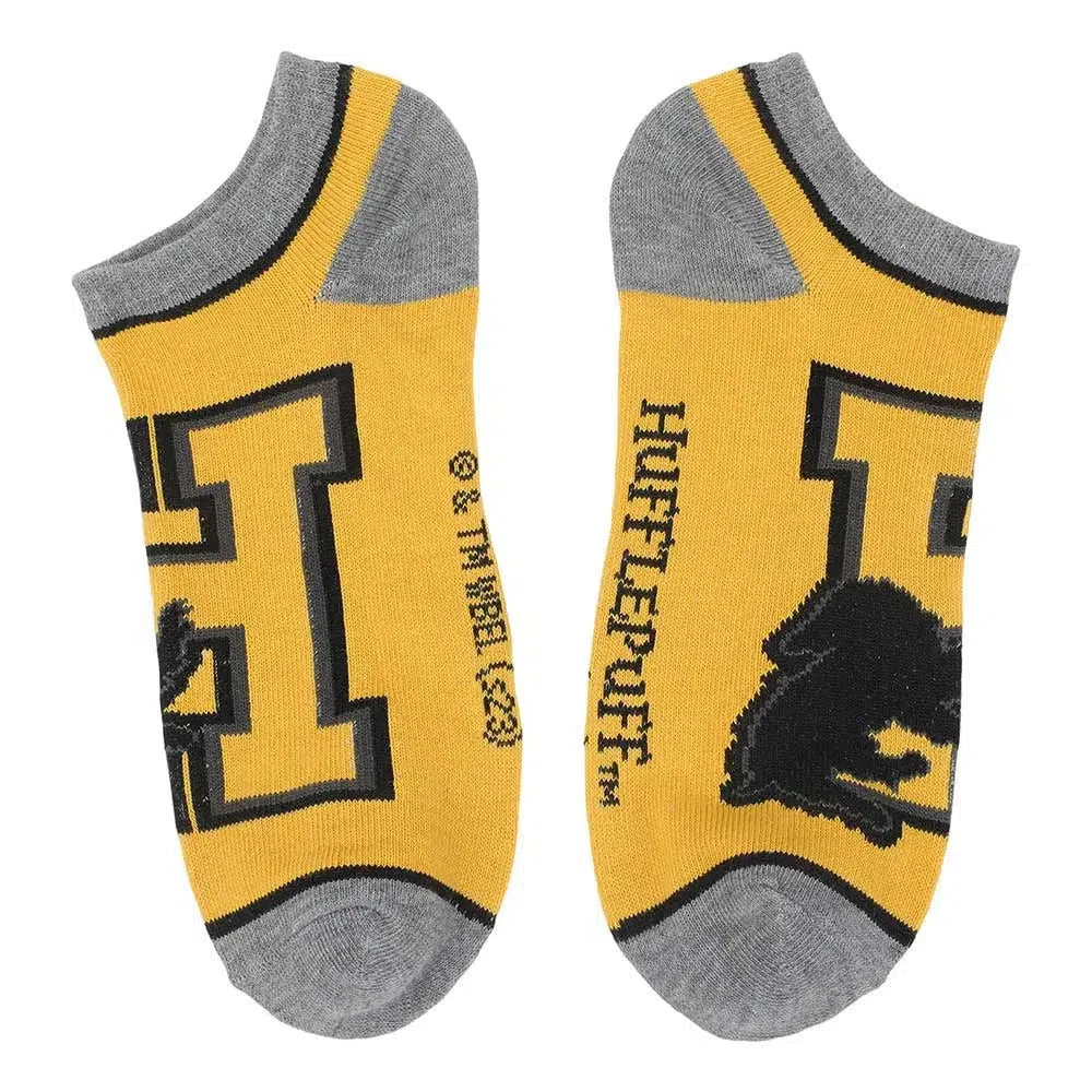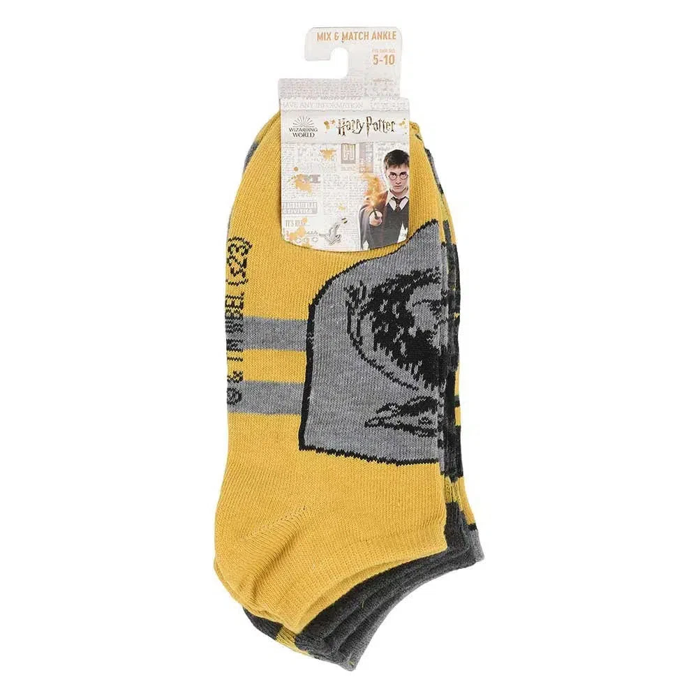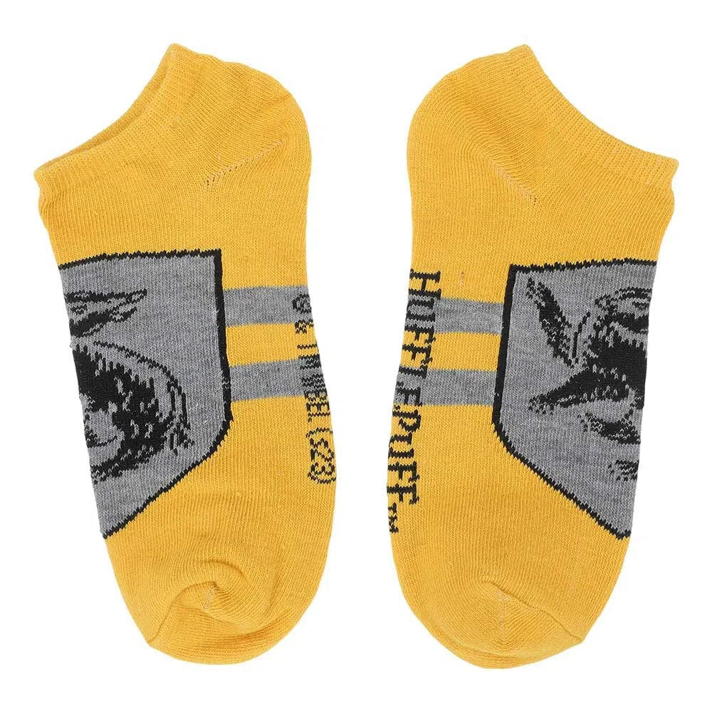 Harry Potter - Hufflepuff House Ankle Socks (5 Pairs) - Bioworld Condition: New Elevate your sock game and show your Hufflepuff pride with these Harry Potter Hufflepuff Ankle Socks by Bioworld. Crafted from a comfortable poly-spandex blended fabric, these socks provide both flexibility and coziness to keep your feet happy throughout the day. Designed to fit sock sizes 9-11 and shoe sizes 5-10, these socks offer a versatile and comfortable fit for most. They're easy to care for with a simple machine wash in cold water, and the custom hanging header card makes for a convenient display and gifting option. Imported with the utmost attention to detail, these Hufflepuff ankle socks are the perfect addition to your wizarding wardrobe, whether you're showcasing your house loyalty or simply looking for a touch of magical style and comfort in your daily attire. Product Features: Material: The poly-spandex blended fabric provides feet with flexibility and extra comfort Sizing: Sock size 9-11 / Fits shoe size 5-10 Care: Machine wash cold with like colors, do not bleach, tumble dry with low heat Packaging: Custom hanging header card Imported