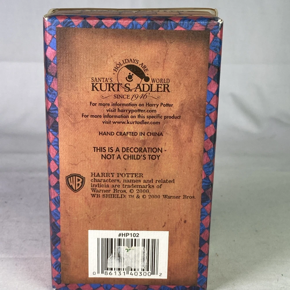 Recipient:MultipurposeUPC:086131403002Occasion:ChristmasOriginal/Licensed Reproduction:OriginalYear Manufactured:2000Type:OrnamentFeatures:HangingAntique:NoMPN:HP 102Item Height:4 inVintage:YesTime Period Manufactured:2000-2009Production Technique:UnknownSet Includes:OrnamentFranchise:Harry Pottergtin13:086131403002Number of Items:1Subject:Fantasy FigureTheme:FantasyCollection:OrnamentsMaterial:PlasticColor:MulticolorSize:MediumBrand:Kurt AdlerSeller Notes:“Good condition as seen in photos.”Character:HermioneShape:Female