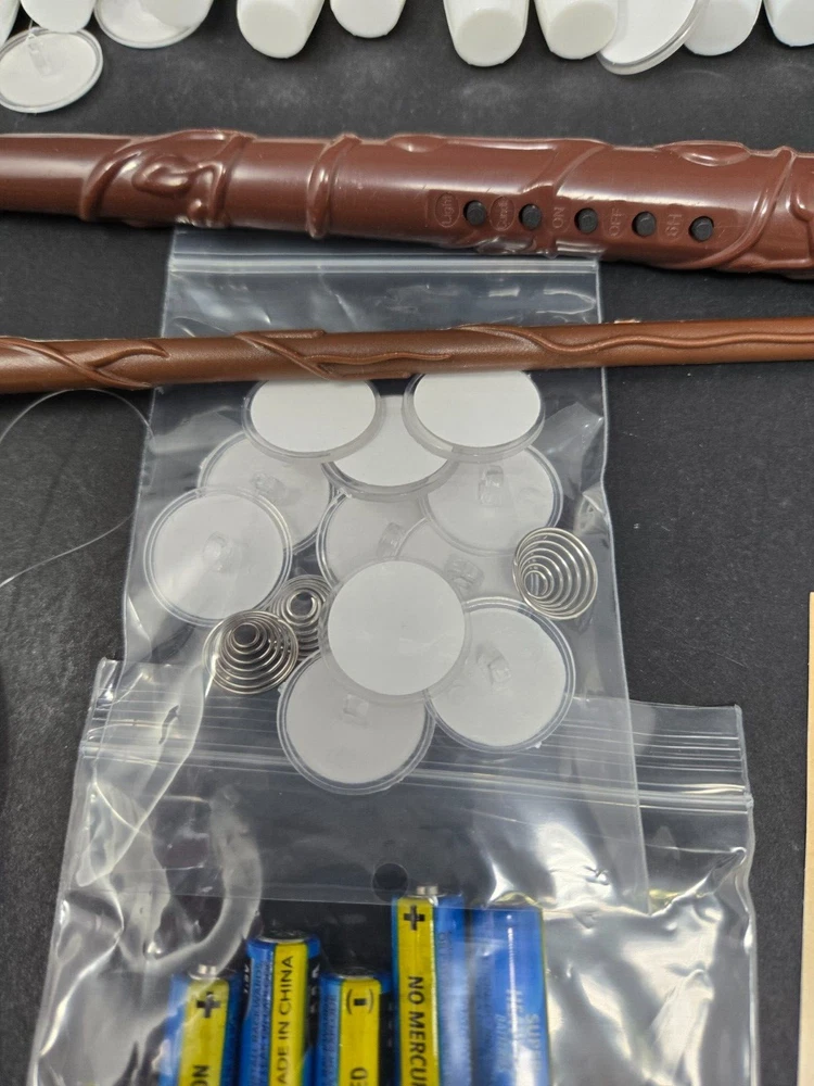 This medium-sized set of 50 white plastic floating candles is designed in a round shape and is powered by AAA batteries. Each candle features LED lights and the lot comes with three remote wands, creating a magical Harry Potter theme. Perfect for adding a touch of art deco style and fantasy to your living room or dining room, these unscented candles have a burning time of more than 5 hours. Ideal for those who enjoy fun, curiosity, and novelty themes, this set is a unique addition to any home decor. NOS (New Old Stock) New/Open Box. Lot includes EVERYTHING you see in ALL of the photos. All of our items are shipped from a SMOKE-FREE environment.