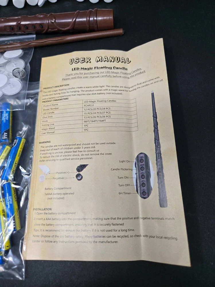 Harry Potter LED Floating Magic Candles Set of 50 with 3 Remote Wands New Old Stock
