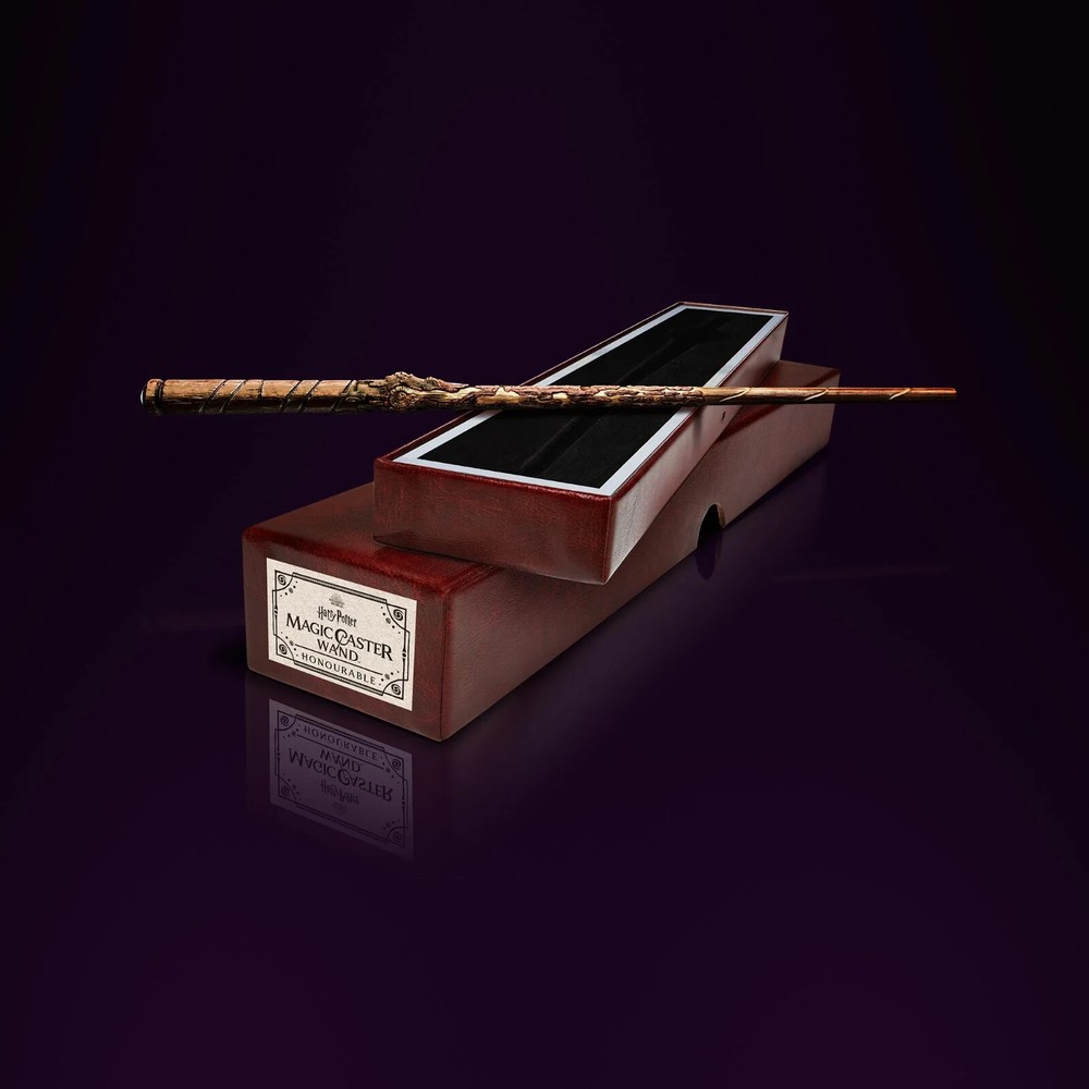 Harry Potter Magic Caster Ultimate Wand Experience: Honourable The Harry Potter: Magic Caster Wand™ makes every day magical. Featuring multi-coloured lights, sounds and haptics, the wand and box react with LED lights and audio as you cast motion-activated spells. Use your wand and the companion app to interact with Bluetooth-enabled speakers, smart home light bulbs, TVs, and other connected devices to create an immersive multi-sensory experience. Personalise your experience by using your Hogwarts house, Patronus, and wand traits from WizardingWorld.com, or select your own profile characteristics. Earn experience points as you complete specific tasks, such as casting and mastering the wand motions from the app spell book. Level up and unlock over 50 spells for hours of interactive adventure. Challenge your friends to a wizards’ duel. (Two wands and compatible smart devices required for duelling)