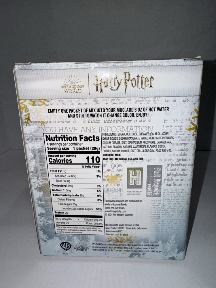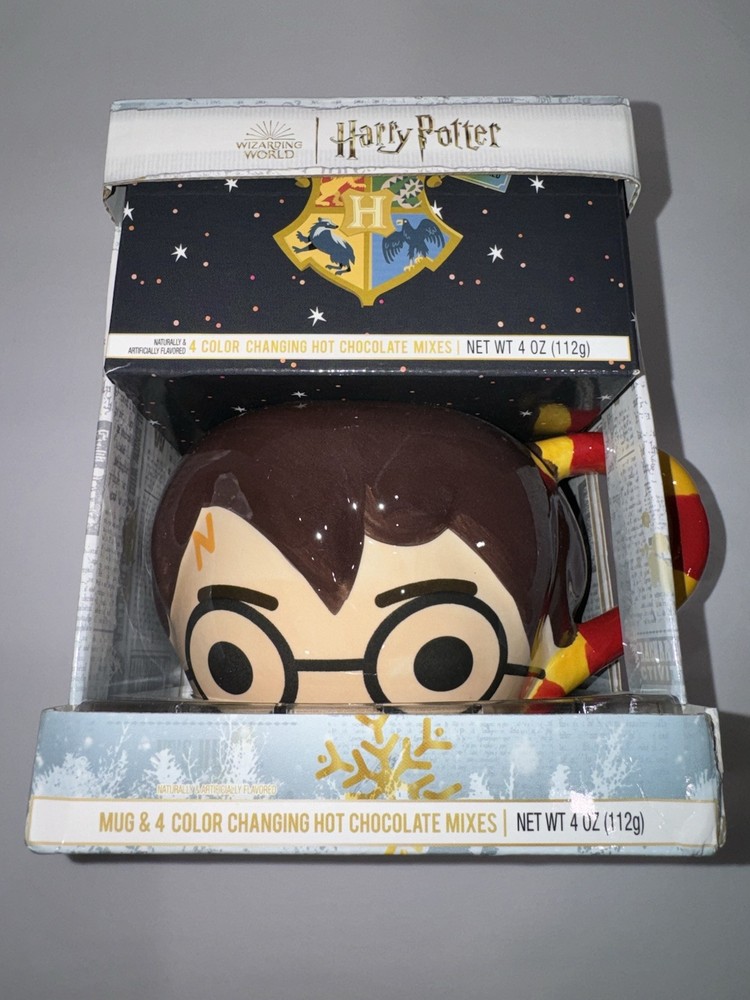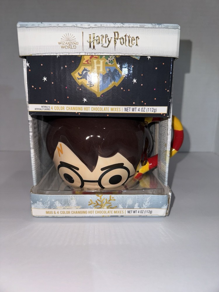 Harry Potter Mug With 4 Color Changing Hot Chocolate Mixes -Brand New in Box -Will package with great care if purchased -This Harry Potter factory sealed mug is a must-have for all fans of the franchise. Featuring a magical design with color-changing abilities, this collectible item is perfect for any fan of the wizarding world. Along with the mug, you will receive 4 different hot chocolate mixes to enjoy while you use your new favorite cup. -Whether you're a Gryffindor, Slytherin, Hufflepuff, or Ravenclaw, this mug is perfect for showing off your love for Harry Potter. The mug and hot chocolate mixes make for a great gift for any Potterhead or a treat for yourself.