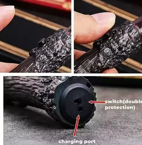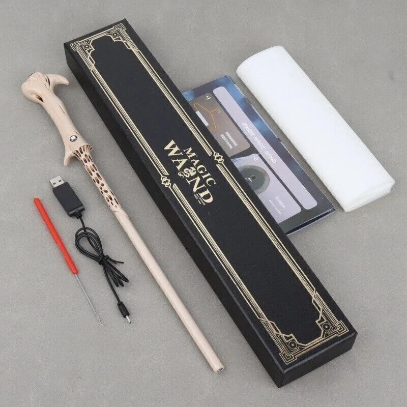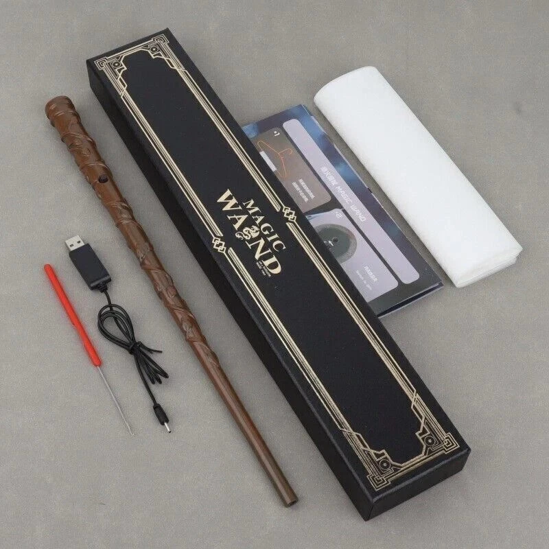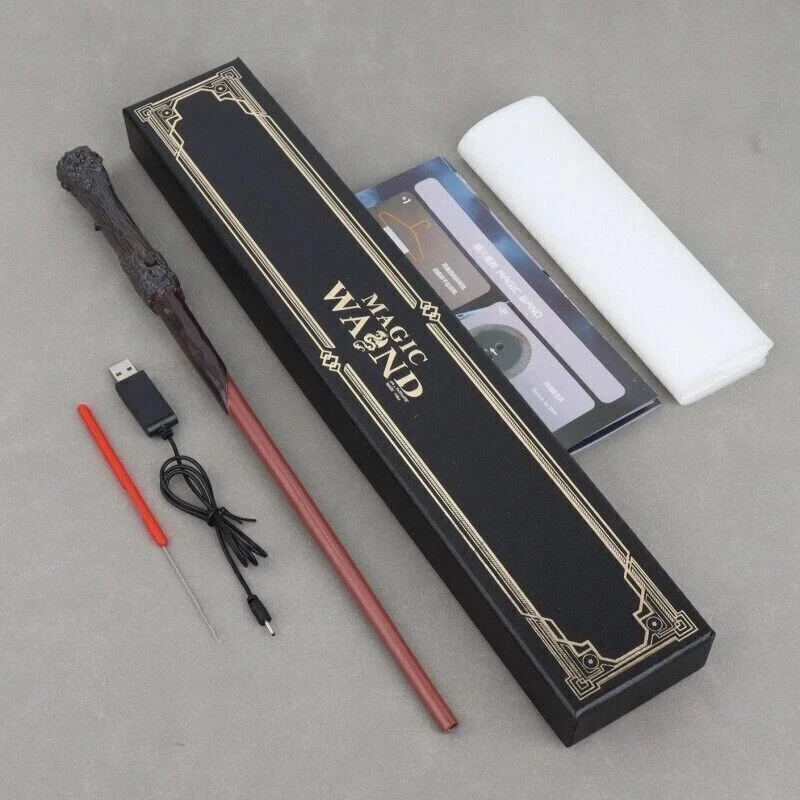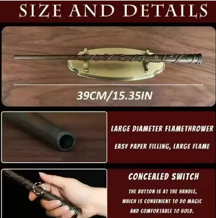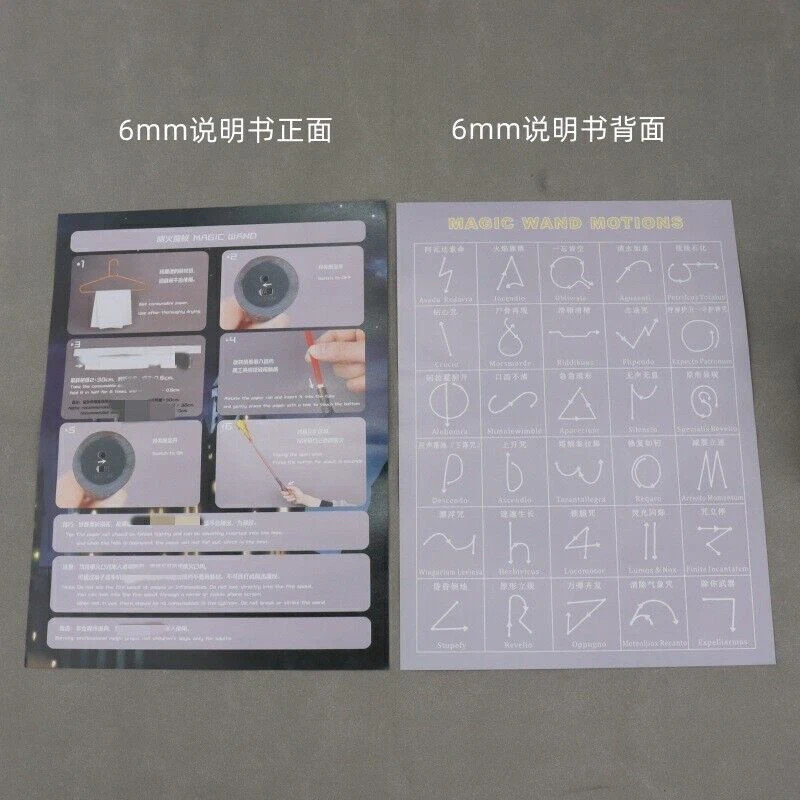 Product features: High stability, exquisite workmanship, silent button switch, charger with indicator light. The green light is fully charged, while the red light is charging. When fully charged, it will automatically power off. A bilingual graphic and textual instruction manual in both Chinese and English. Consumable paper is packaged in self sealing bags, which are easy to open repeatedly and come with warning messages in both Chinese and English. Product Introduction: Exquisite craftsmanship, solid materials, and a hollow steel tube embedded in the main body make the wand sturdy and durable, and also give the wand a heavy feel when taken away, without feeling light and floating like a plastic toy. Props include: 1 wand, smart USB charging cable, auxiliary hook, Zhou language meter, gift box, wand protective bag, transparent protective bag for gift box. Maintenance suggestions: Don't charge the battery only when it's completely out of battery. Charging it once after 20-30 uses is beneficial for battery life. Continuously pressing the switch will cause the battery to overheat instantly, and the battery protection board will automatically protect it. Pressing the filament again will not light up. After a while, when the battery temperature returns to normal, the protection will be automatically released. Pressing the switch again will restore normal operation. The ignition is completed instantly, usually for 1 second each time. Do not press it for a long time or frequently, as it is beneficial for the battery life Warning: Wands are professional magic props and are not children's toys. They are not allowed to be used by minors or released towards people. When checking the heating wire, do not look directly at it and look sideways to prevent excess spark paper from being ignited. Please strictly follow the instructions for use!!! The material of the gift dual-use plug hook is iron, which may oxidize when exposed to air at certain temperatures and humidity, resulting in rust on the surface, but it does not affect its use. Consumables Description: Consumables paper needs to be stored in a damp environment, which may cause mold spots on the surface of the paper. After drying, it can be used normally