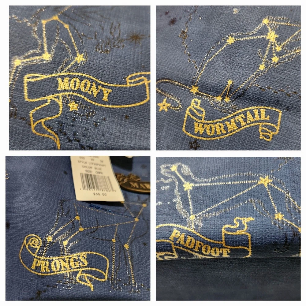 The Harry Potter Marauders Tote Bag is a large blue bag featuring the iconic Harry Potter franchise logo. Measuring 19x12x6 inches, this tote bag is perfect for fans of the fantasy genre and the Harry Potter series. Made by Bioworld, this officially licensed product is ideal for carrying everyday essentials while showing off your love for the magical world of Harry Potter. Perfect for bookworms, witches, and wizards alike, this tote bag is a must-have for any Harry Potter enthusiast.