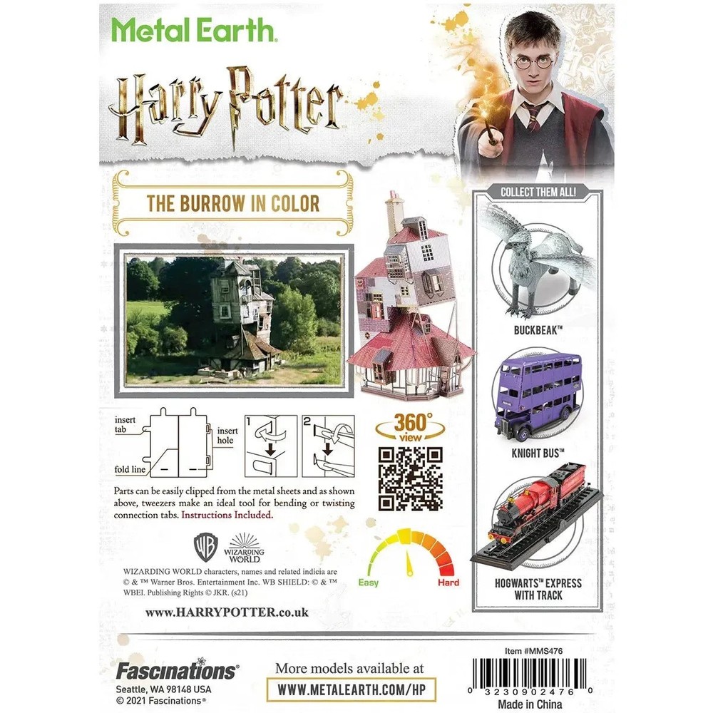 Harry Potter - The Burrow in Color Figure Model Kit (Steel, Moderate Difficulty) - Fascinations - Metal Earth Series Condition: New Harry Potter - The Burrow in Color Figure Model Kit (Steel, Moderate Difficulty) - Fascinations - Metal Earth Series brings the beloved Weasley family home to life with stunning steel craftsmanship and vibrant color details. A symbol of warmth, family, and magic, The Burrow serves as a safe haven for Harry Potter and his friends, known for its charmingly uneven structure and cozy atmosphere. This moderate-difficulty model kit beautifully captures the house’s stacked floors, rustic exterior, and whimsical architecture, making it a delightful addition to any Harry Potter collection. Constructed from high-quality steel sheets, this model kit features laser-cut precision parts that connect using a tab-and-slot assembly system, eliminating the need for glue or solder. The detailed color accents bring out the Burrow’s signature warmth and character, making it a visually striking display piece. The illustrated step-by-step instructions guide builders through the process, while tweezers and clippers are recommended for handling the intricate metal components, ensuring a smooth and precise build. Designed for ages 14 and up, this unassembled model kit is neatly packed in a sleek envelope, making it a perfect collectible or gift for Harry Potter fans, fantasy lovers, and model-building enthusiasts. Once completed, The Burrow stands as a unique keepsake, celebrating the magic and charm of the Weasley family home. Whether showcased individually or as part of a larger Harry Potter display, this Metal Earth model kit provides an enchanting and rewarding building experience. Browse what else we have in stock - thousands of toys, games, and other fun merchandise from Poggers, the best toy store in the world!