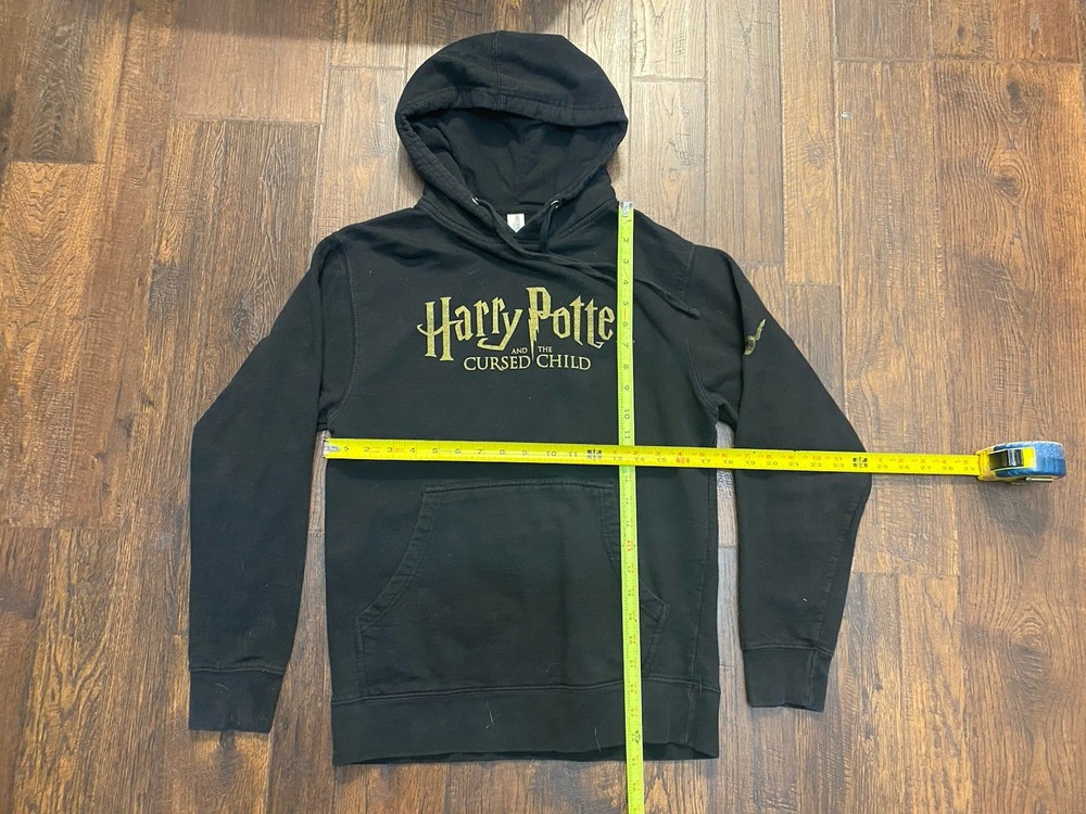 The product is a new black Harry Potter & The Cursed Child hoodie by Independent Trading Company in men's size small. This pullover hoodie features the iconic Harry Potter character and is perfect for fans of the series. It is designed for regular fit and is a stylish addition to any wardrobe, ideal for showing off your love for the wizarding world created by J.K. Rowling.