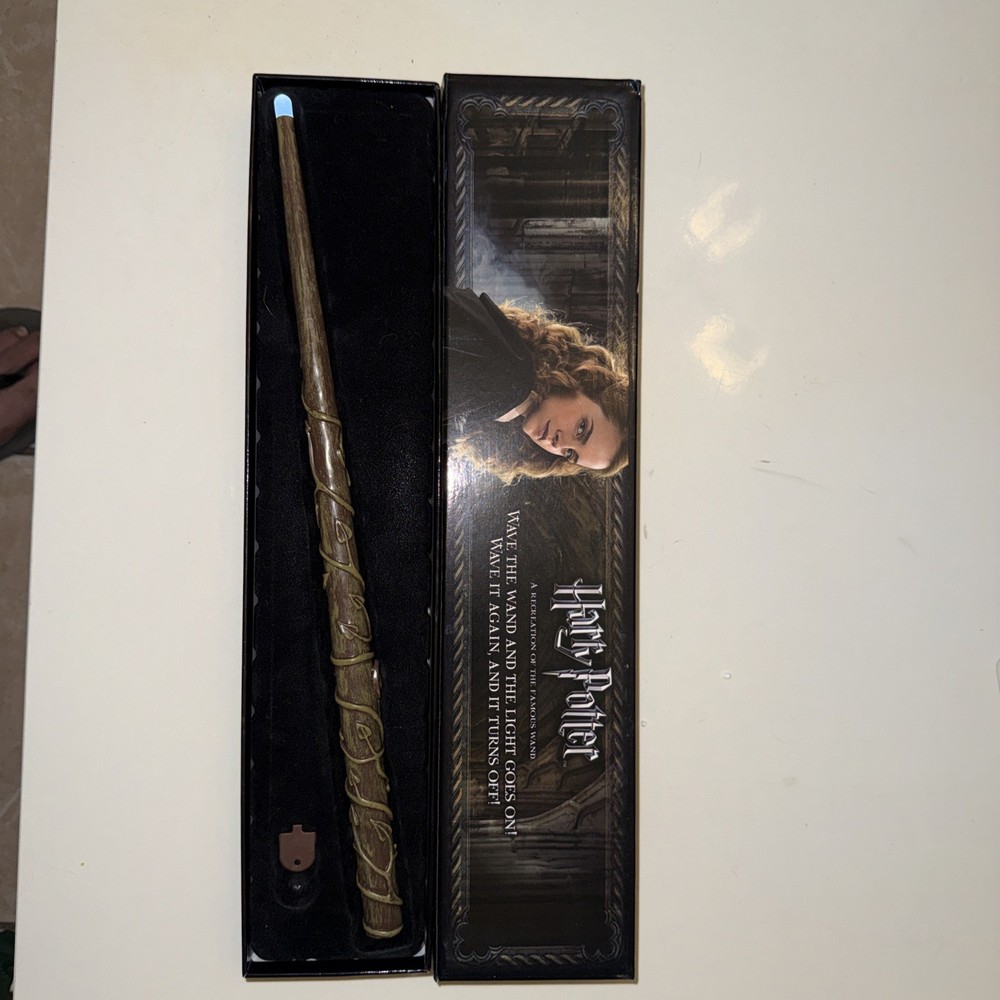 The Harry Potter The Noble Collection Hermione Granger's Illuminating Wand is a collectible fantasy item inspired by the iconic magical world of Harry Potter. This officially licensed wand, made in China, stays true to the franchise's authenticity and design. Perfect for fans of the series, this illuminating wand adds a touch of magic and whimsy to any collection.