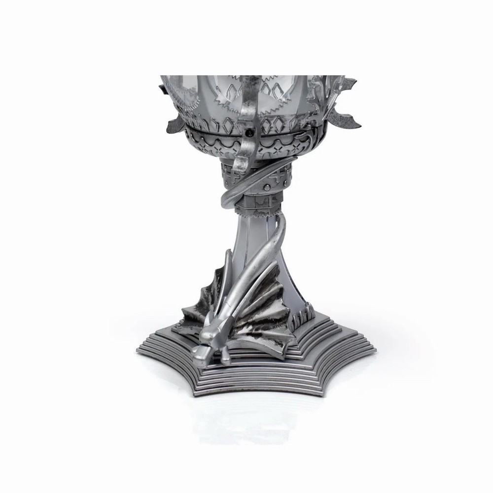 This replica of the Triwizard Cup from Harry Potter and the Goblet of Fire measures over a foot tall! Both the base and the cup light up with LED bulbs powered by batteries so you can take it with you wherever you venture. It's a great decoration for a Harry Potter viewing party or birthday gift. Even unlit it makes a great display collectible for the HP fan.