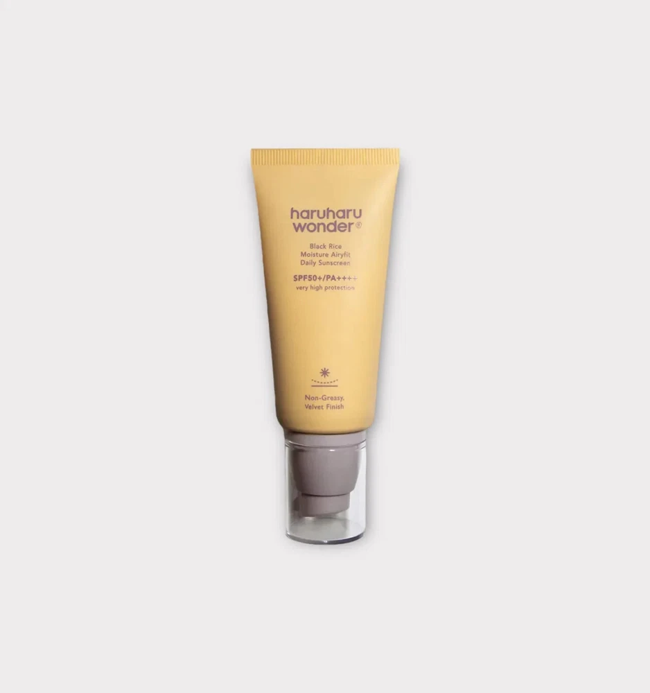 Haruharu Wonder Black Rice Moisture Airyfit Daily Sunscreen 1.69fl.oz - Velvet Finish Pack of 2 About this item AIRLESS PROTECTION: Shield your product from oxidation with airless packaging, ensuring freshness and efficacy every time you use it! ANTIOXIDANT BLISS: Infused with Rice Bran Oil and Black Rice, our formula provides a powerful antioxidant effect for radiant, moisturized skin. TWO FINGERS, FULL PROTECTION: Follow the 2-finger rule for perfect coverage on face, neck, and ears—no spots missed! SKIN-FRIENDLY ELEGANCE: Revel in a non-greasy formula that offers your skin the care it deserves. VEGAN-FRIENDLY ASSURANCE: Committed to ethical choices, we are vegan-friendly, cruelty-free, ensuring a responsible skincare regimen.