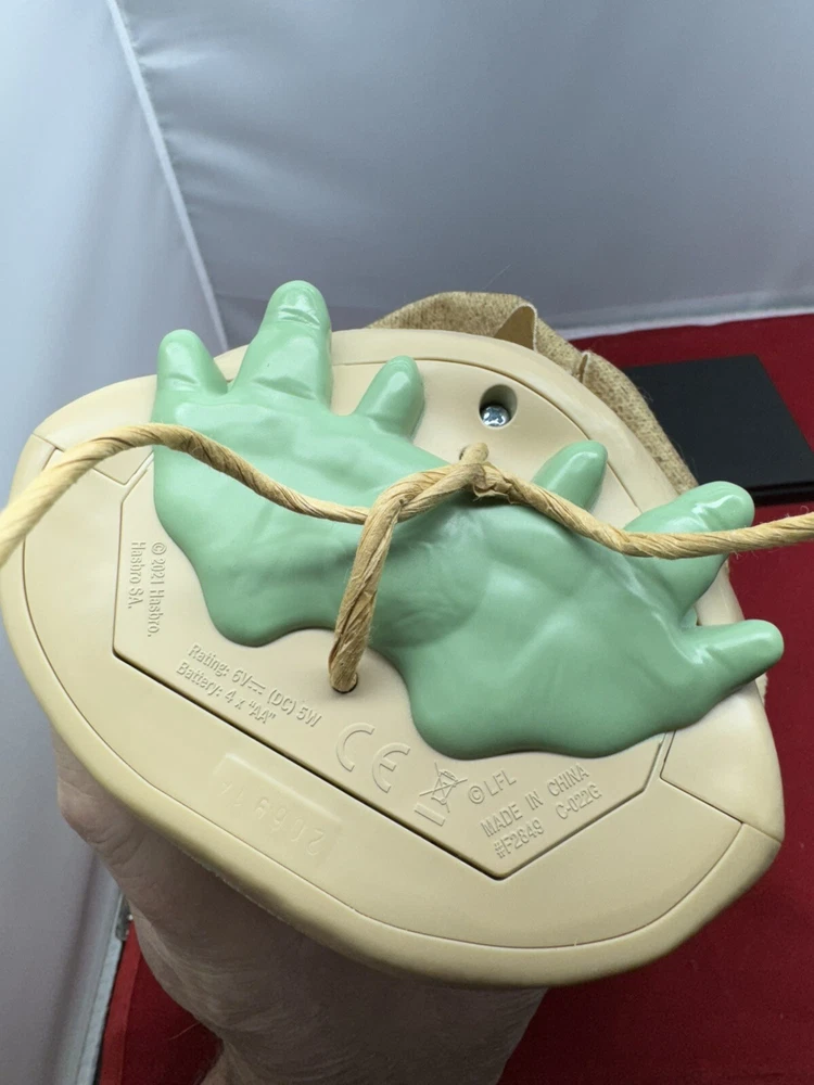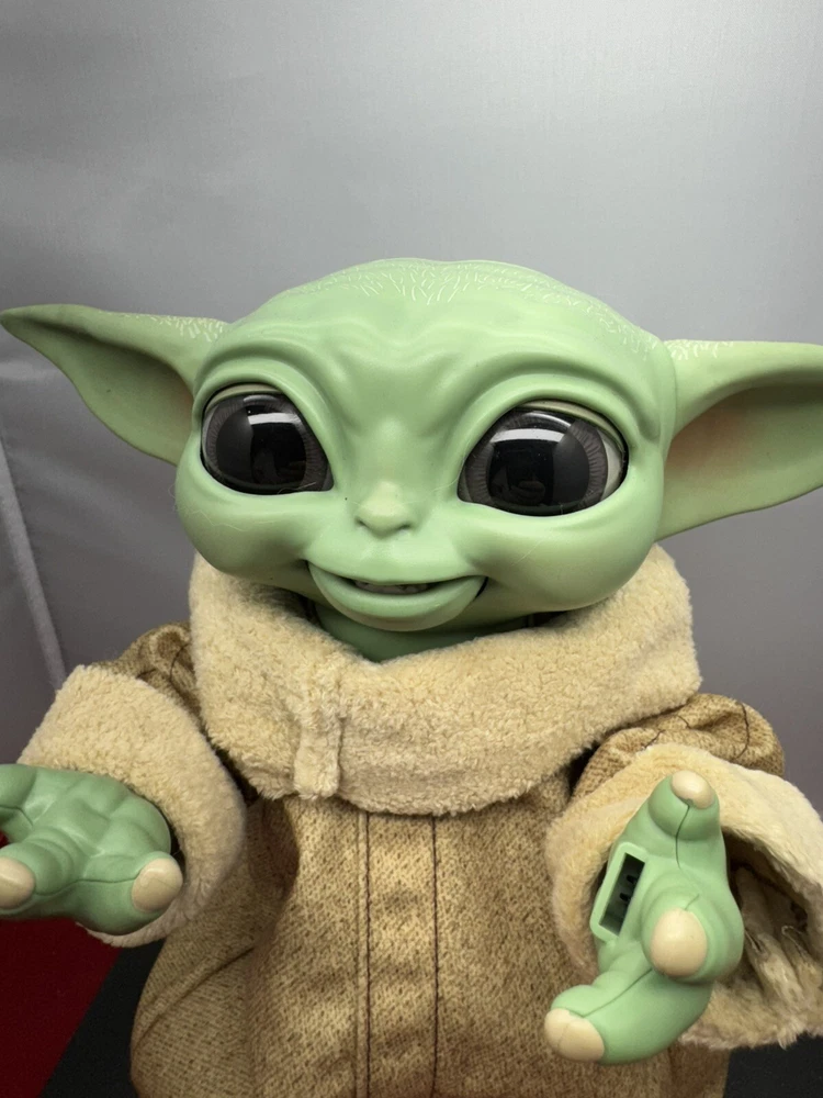 The Hasbro 2021 Star Wars Mandalorian Child Animatronic 9" Baby Yoda Talking Grogu is an action figure based on the character Grogu, also known as The Child, from the TV show The Mandalorian. This plastic figure stands 9 inches tall and features animatronic capabilities, allowing it to talk and make sounds. It is battery-powered and comes dressed in clothes to resemble the character from the popular Star Wars franchise. This collectible item appeals to fans of Star Wars and The Mandalorian, offering an interactive and detailed representation of the beloved character.