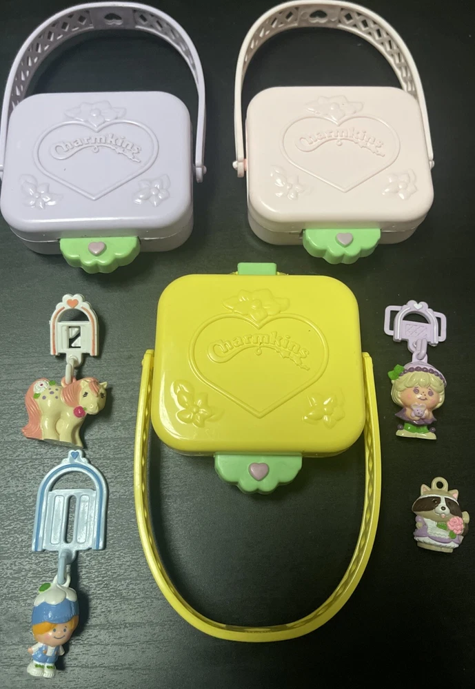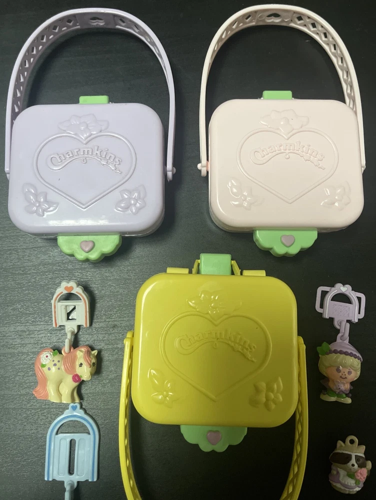 Big lot of vintage Hasbro Charmkin figures and players. Collectible with some HTF pieces in gently played with condition. Great deal for these fantastic pieces. Please see all photos for details and ask any questions before purchase. Sorry NO lot splitting. Thank you!