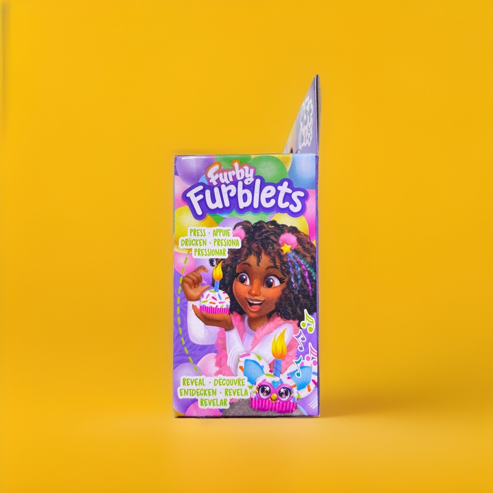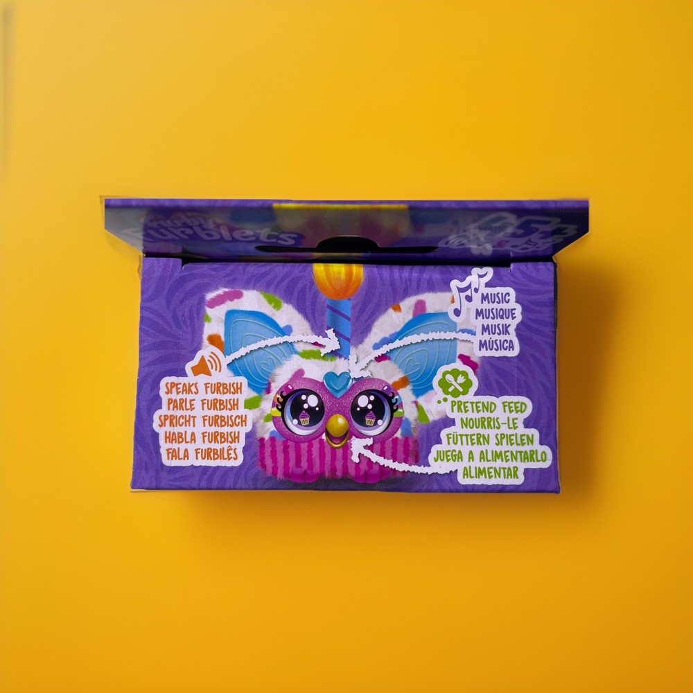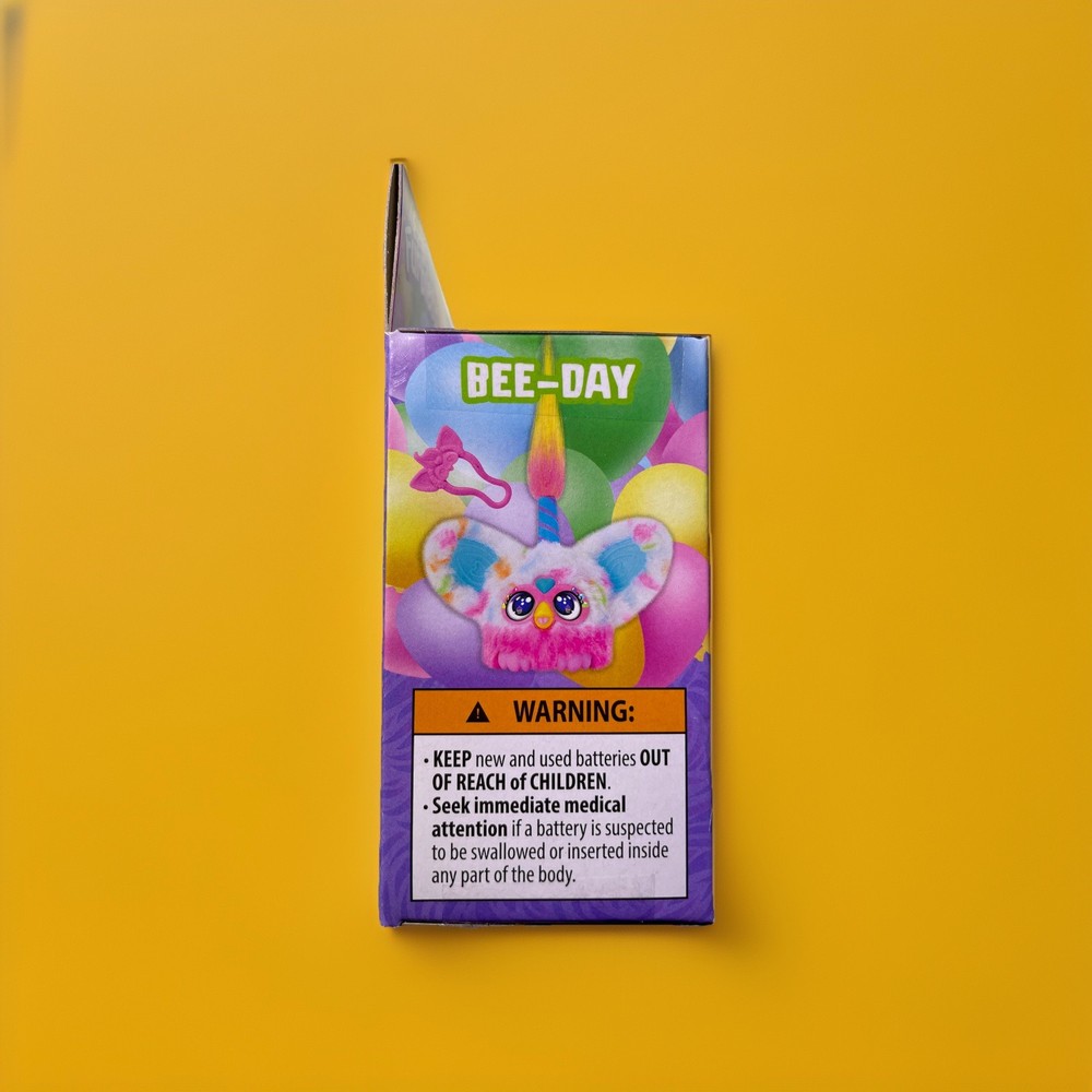 Celebrate in style with BEE‑DAY, the special‑edition Furby Furblet by Hasbro! This mini electronic friend is designed to look like a festive cupcake with a lit candle, and it sings a birthday song in Furbish — perfect for gifting, collecting, or adding a little party energy to any day. BEE‑DAY is part of the Furblets line of pocket‑sized musical companions and features fun sounds, bright colors, and adorable details that make it a standout in any collection. --- Features • Official Hasbro Furby Furblet – BEE‑DAY • Special Edition that resembles a cupcake with sprinkles and a candle • Sings “Happy Birthday” in Furbish • 45+ sounds, songs, and phrases • 3 ways to activate sounds: • Press the beak • Tap the heart gem • Interact during play • Vibrant colors: white body with rainbow sprinkles, pink faceplate/cup, blue heart gem, and orange/yellow candle hair • Recommended for ages 6+ • Includes button cell batteries (A76/LR44) --- Safety Note This product contains a button cell or coin battery. Ingestion hazard — can cause serious injury or death. Keep away from small children and follow all safety instructions on the packaging.