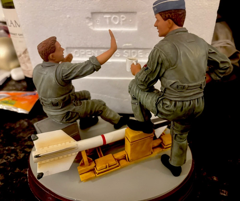 The product is a vintage Hasbro G.I. Joe action figure scene from the "Unforgettable Military Moments" series, featuring the "Story of Victory." This multicolor resin figure depicts a G.I. Joe character and is part of the G.I. Joe franchise, specifically from the 2000s. It is an original licensed reproduction from the G.I. Joe series, capturing a military and adventure theme with a focus on victory and heroism. This collectible piece showcases a significant moment in military history through the iconic G.I. Joe brand.