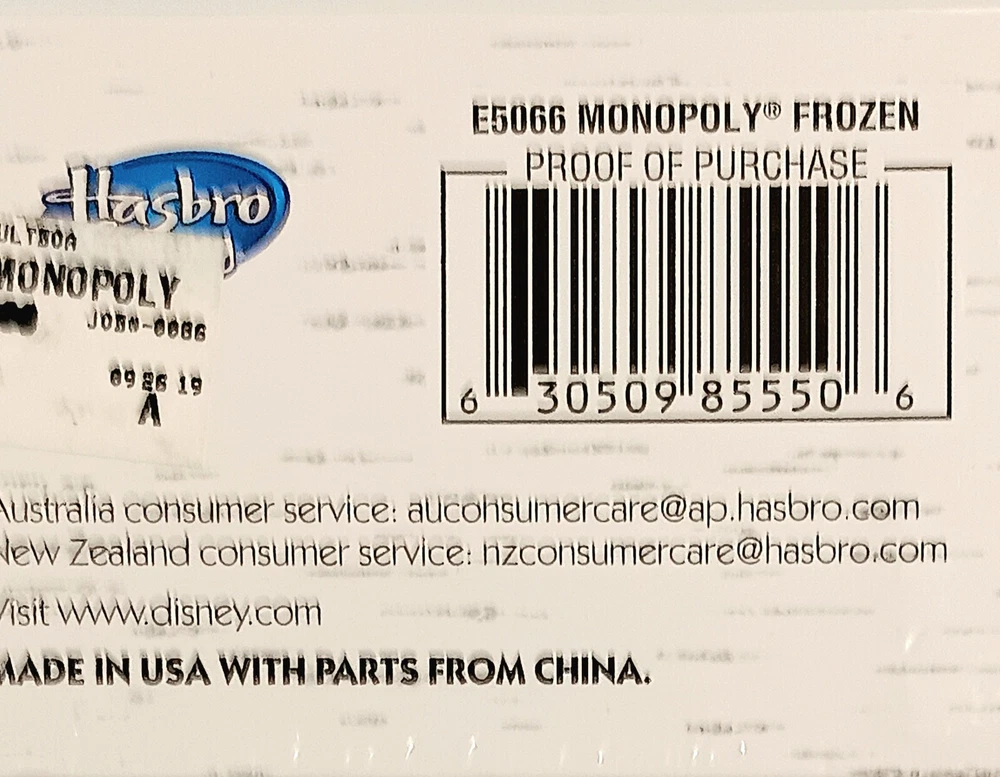 Character Family:FrozenMPN:E5066Year:2019Recommended Age Range:8 Years & Upgtin13:0630509855506Type:Game BoardAward:Deutscher Spiele PreisGender:Boys & GirlsBrand:HasbroGame Type:Board GameUPC:0630509855506Game Title:Monopoly: Disney Frozen 2Min. Number of Players:2 playersTheme:FinanceFeatures:Automatic/Electronic Table