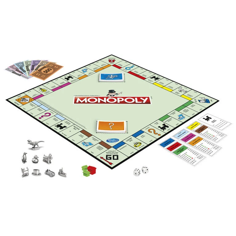 FAST-DEALING PROPERTY TRADING GAME: It's a Family Game Night staple! Players buy, sell, dream and scheme their way to riches with the Monopoly Game PLAYERS BUY, SELL AND TRADE TO WIN: There's a new mogul in town! Buy out neighborhoods, sell properties, charge rent, and grow an empire in the Monopoly Game for adults and kids age 8 and up BUILD HOUSES AND HOTELS: Love that feeling when an opponent lands on an owned property? In this classic family board game, the more players build, the more rent money they can collect. Cha-ching GAME-CHANGING CARDS: Chance and Community Chest cards can change a player's fortune! Who will collect money and who will get sent straight to Jail? WHAT'S YOUR TOKEN?: Includes some classic tokens and others, such as the Rubber Ducky, Tyrannosaurus Rex, and Penguin. Choose a fave for Family Game Night, a homeschool activity, or anytime indoor fun Select a favorite Monopoly token, place it on Go and roll the dice to own it all! In classic Monopoly gameplay it's all about buying, selling and trading properties to win. The more properties a player owns, the more rent they can charge. Maybe spring for Park Place? Or is St. James Place a steal? Make the call in this board game for adults and kids ages 8 and up. Chance or Community cards can be a game changer. Will it make a player richer -- or send someone to Jail? The Monopoly game is a fun thing to do while staying at home. It's a Family Game Night Favorite, a great indoor game for kids, and a fun homeschool activity. There can be only one winner in the Monopoly game. Will it be you? The Hasbro Gaming and Monopoly names and logos, the distinctive design of the gameboard, the four corner squares, the Mr. Monopoly name and character, as well as each of the distinctive elements of the board and playing pieces are trademarks of Hasbro. Includes gameboard, 8 Tokens, 28 Title Deed Cards, 16 Chance Cards, 16 Community Chest Cards, 32 Houses, 12 Hotels, 2 Dice, Money Pack and Game Guide. Ages 8 and up For 2-6 players ||DPSP-TO5475FB89 Our Store We have more items available. Please check them out. Shipping & Handling Flat shipping rate, if specified, does not apply to Canadian territories and remote areas. For U.S., flat shipping rate only applies to lower 48 states. Please contact us for shipping rate if flat shipping rate does not apply to you. Upon receipt of payment, item will ship via Canada Post surface or UPS, Fedex Ground service or another economic service within the timeline specified in item listing. If possible, we will combine shipping for multiple items. International Orders Import duties, taxes, customs fees and charges are not included in the item price or shipping charges. These charges are normally collected when you pick up the package. Please check with your country's customs office on what these additional charges will be prior to buying the item(s). International buyers are responsible for these charges. Please note that package shipped from outside your country can be held up in customs and it can cause delay in shipping time. This is beyond our control and there is nothing we can do to speed up the process. Sales Tax For the Canadian buyer, applicable retail sales tax will be charged. Taxes are charged on both Item Price and Shipping & Handling charges if applicable. Store Policy Sales Agreement Upon purchase, you have entered a binding contract under the terms of the listing. If an item is out of stock or on backorder , you will be notified and given the option to wait for the item to become available, choose another item, or a full refund. Backordered items are shipped as they become available. Return and Refund Unless specified otherwise, every item purchase (except health, hygienic, food products and items with No Return Accepted specified in the listing) comes with unconditional money back guarantee minus shipping & handling charge and 20% restocking fee . Before returning, please contact us for a RMA number. All returns must come with a RMA number. Return without a RMA number will NOT be accepted. Buyer is responsible for the shipping cost of returning the item(s) to us and all original shipping, handling, insurance, and other fee associated with the returned item(s) are not refundable. For free shipping item(s), we still pay for shipping when sending item(s). The shipping cost associated with free shipping item(s) is not refundable. All merchandise returned must be in its original states with tag intact, undamaged, clean and unused. Any return must be made within 30 days of receipt. Upon receipt and careful examination of the returned merchandise, refund will be issued and you will be notified after the refund is processed. Please allow 5 business days from the time we receive your returned item(s) for your refund to be issued. Communication All communication must be conducted via online message. We do not offer customer service over the phone. We answer all messages promptly, usually within 1-2 days. As a general note, if you do encounter a problem with your item(s), please contact us as soon as possible before leaving a negative feedback. We will do our best to help you. Contact Us For local pickup, special requests and special offers, please contact us.