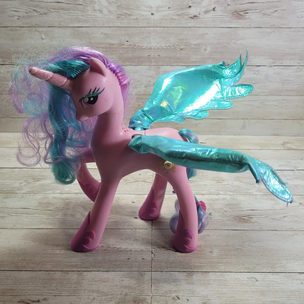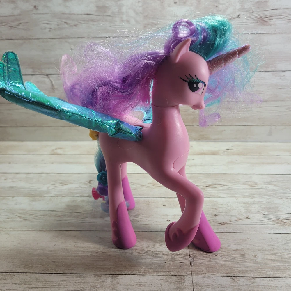 Franchise: My Little Pony Brand: Hasbro Character: Princess Celestia Time Period Manufactured: 2010-2019 Material: Plastic Color: Multicolor Item Length: 5.5 in gtin13: Does not apply Item Height: 8.5 in Features: Battery Powered, Collector's Edition, Light Up, Talking, Unboxed, With Sound Vintage: No Theme: Cartoon & TV Character Animal Species: Horse, Unicorn Country/Region of Manufacture: China UPC: Does not apply Series: My Little Pony Type: Action Figure Year Manufactured: 2010 Items Included: Figure