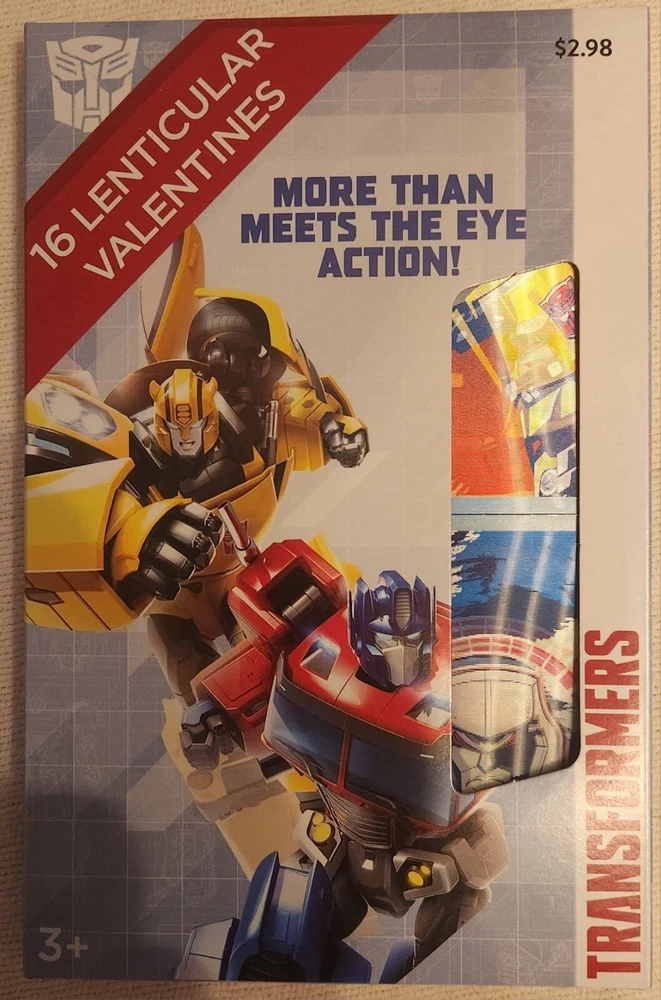 Celebrate Valentine's Day with the ultimate gift for Transformers fans! This set of 16 lenticular cards features the iconic Optimus Prime and Buzz from the beloved franchise. Made with high-quality cardboard material and vibrant multicolor designs, these cards are perfect for children ages 5-12 to gift to their friends on Valentine's Day. Each square-shaped card showcases a different image of Optimus Prime and Buzz, making it a unique and collectible item for fans of all ages. This original set, manufactured by Hasbro in 2023 and produced using kid-friendly techniques, is a must-have for any Transformers or robot enthusiast. Embrace the power of the Autobots and Decepticons this Valentine's Day with these amazing lenticular cards! Bin#W