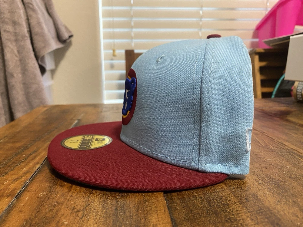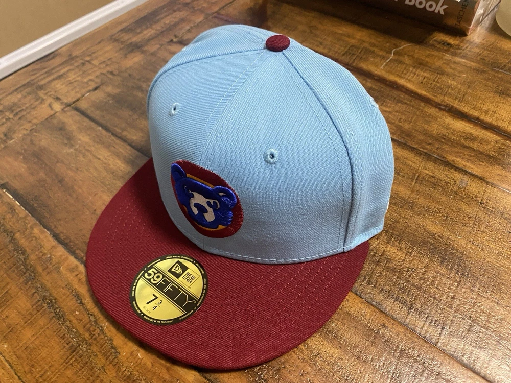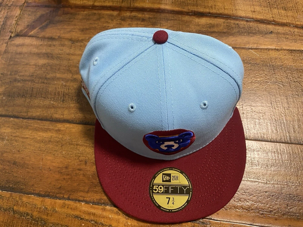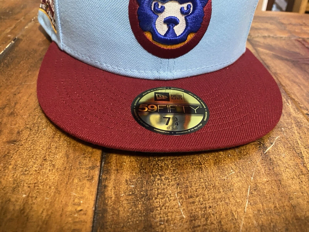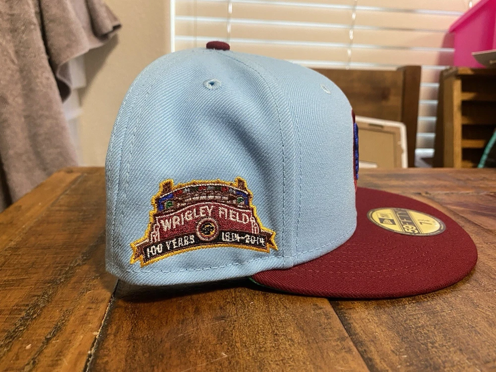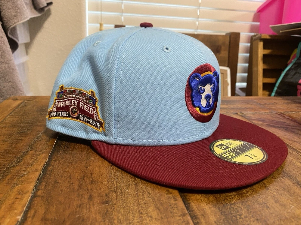 Modified Item: No Product: Cap, Hat League: Major League (MLB) UPC: Does not apply Officially Licensed: Yes Sport: Baseball-MLB Pre & Post Season: Wrigley Field Brand: New Era Team: Chicago Cubs Country/Region of Manufacture: Bangladesh Size: 7 3/4 gtin13: Does not apply Color: Sky Blue/Dark Red/Blue-Green