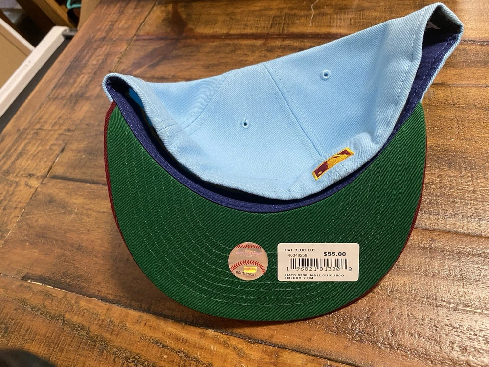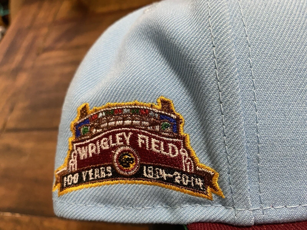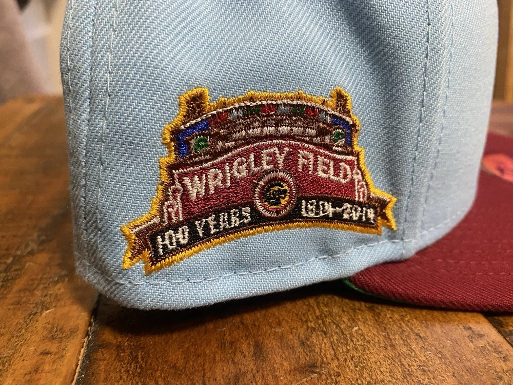 Hat Club Chicago Cubs Wrigley Field Sky Blue Red New Era Fitted 7 3/4 Green UV