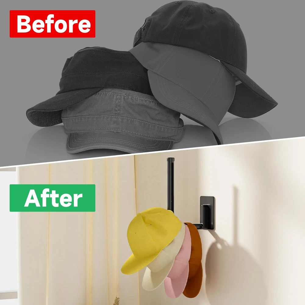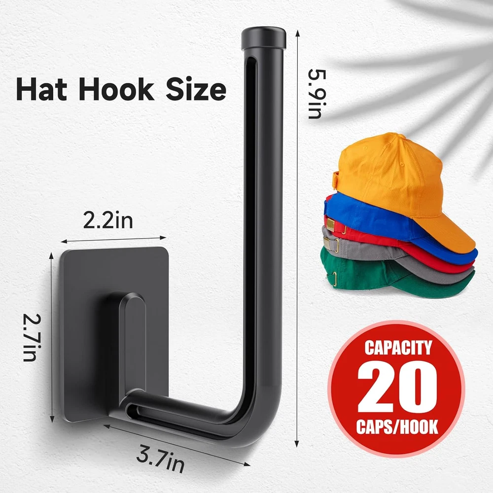 Make Baseball Cap Organizered: Tired of messy caps? Our hat organizer hanger hook solves this problem by neatly organizing your baseball caps, saving space in your home and closet. Extra Large Capacity: Designed with an extra-large capacity, each hat hook can hold up to 20 caps, and each order comes with 4 hat racks, allowing for a total storage of 80 baseball caps, meeting the needs of the whole family. Strong Adhesive Mount: Our hat hooks stand out with larger mounting bases compared to others. This design ensures superior adhesion when using adhesive installation, significantly reducing the risk of them falling off the wall. Pro tip: Allow 24 hours for complete firmness after installation before using the hooks. Concealed Screw Mount:In addition to adhesive installation, for rough surfaces like cement walls or brick walls, you can also use screw installation for added stability and durability, making our hat rack suitable for a wider range of installations. Additionally, we have designed a concealed installation method where the screws are not visible after installation. What You Will Get: 4 pack Hat Racks for Baseball Caps. Product Description