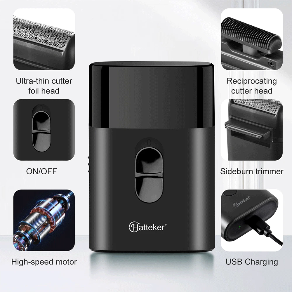 Hatteker Electric Men's Beard Shaver Mini Pop-Up Trimmer Razor USB Rechargeable