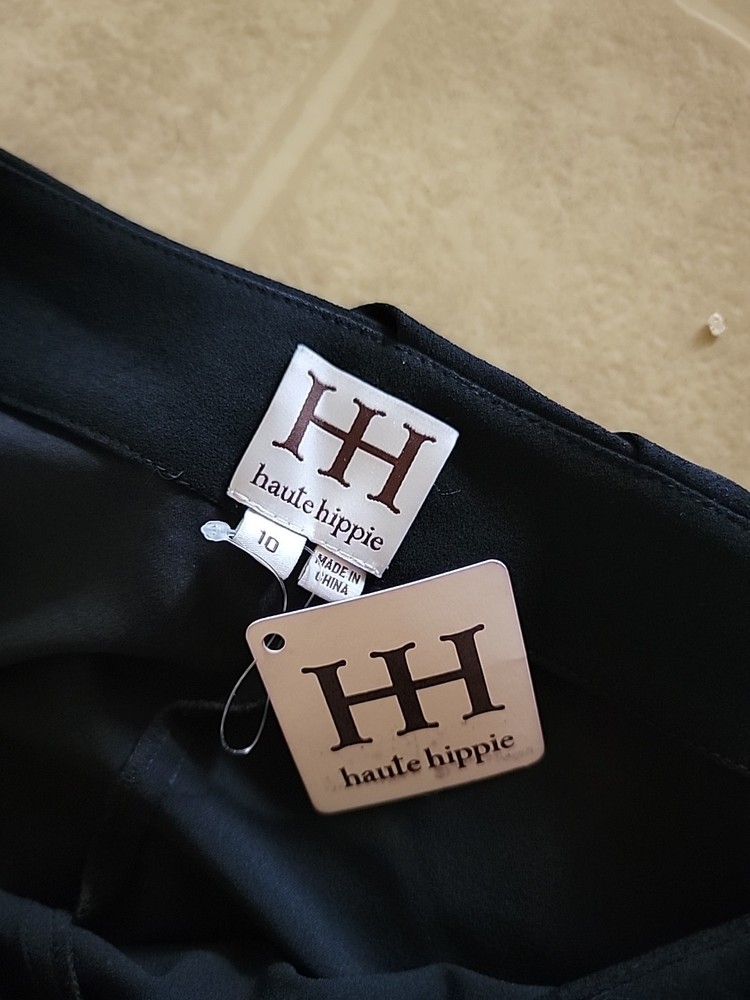 Occasion: Party/Cocktail, Casual Skirt Length: Short Features: Stretch Size Type: Regular Vintage: No Character: N/A Accents: Pleated Handmade: No Color: Black Rise: Mid Size: 10 Personalize: No Material: Polyester, Spandex, Triacetate Department: Women Garment Care: Machine Washable Pattern: Solid Fabric Type: Knit Style: Mini Type: Skirt Season: Fall, Spring, Summer, Winter Closure: Zip Brand: Haute Hippie