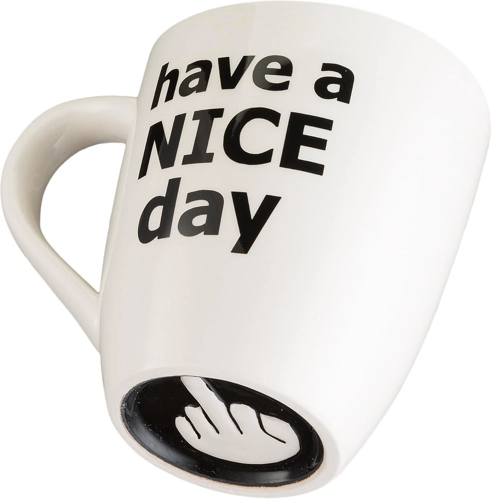 Store New Arrivals Add to Favorite View Feedback Contact Have a Nice Day Coffee Mug, Funny Cup with Middle Finger on the Bottom 14 Oz. - by Description Item model number DZ-5275 Style Coffee cup Number of Items 1 Pattern Letter Print Theme Funny Unit Count 1 Count Material Ceramic Capacity 414 Milliliters Batteries required No Product Dimensions 4"W x 5"H Volume 414 Milliliters Age Range (Description) Adult Is Discontinued By Manufacturer No Specific Uses For Product Hot Drinks Included Components Handle Reusability Reusable Item Weight 12.3 ounces Material Feature ceramic Material Type Free Lead Free Special Feature Printed Color White Shape Round Recommended Uses For Product Home Product Care Instructions Hand Wash Only, Machine Wash Size 14 Ounces A hilarious surprise From the side, this coffee mug sends a cheerful message, but from the bottom it shows how you really feel, Great cool stuff for Gifting or as a white elephant gifts for adults, Weird stuff best friend gifts for coworkers, women and men Easy to sip from Perfectly shaped handle and curved rim allow you to keep hold of the mug and sip with ease Made to last the message is printed onto the ceramic materials, so they will not rub or flake off like stickers, and the Bottom image is three-dimensional to give it a real image feel. Perfectly sized Holds 14 ounces of coffee, tea or cocoa CONVENIENT FOR YOUR COFFEE BREAK heat up a drink and put it in the dishwasher for easy cleanup Product description ABOUT US We offer the best prices around on high quality products. Our E-store includes media such as books, movies, music and games while offering electronics, toys, sporting apparel, clothing, tools, general home, garden items and more. SHIPPING We are always working hard to ensure your package arrives as soon as possible. Please understand that some factors like weather, high postal traffic, and the performance of shipping companies are outside of our control. We offer free shipping to the lower 48 states and ship within 2 business days of payment, usually sooner. We do not accept P.O. Boxes. Please provide a physical address. RETURNS We offer a 30-Day Return Policy on items which you are not completely satisfied with. You have the option for a full-refund or an exchange of the item. No returns are available on items shipped outside of the USA. PAYMENT We accept PayPal. CONTACT US This page content is yet to come Please ad us to your favorite seller and visit again later Thank You CUSTOMER SATISFACTION We try our very best to make sure every customer is completely satisfied. If there's a problem, message us! We're happy to help.