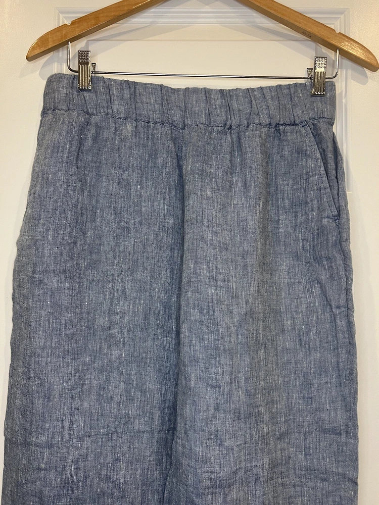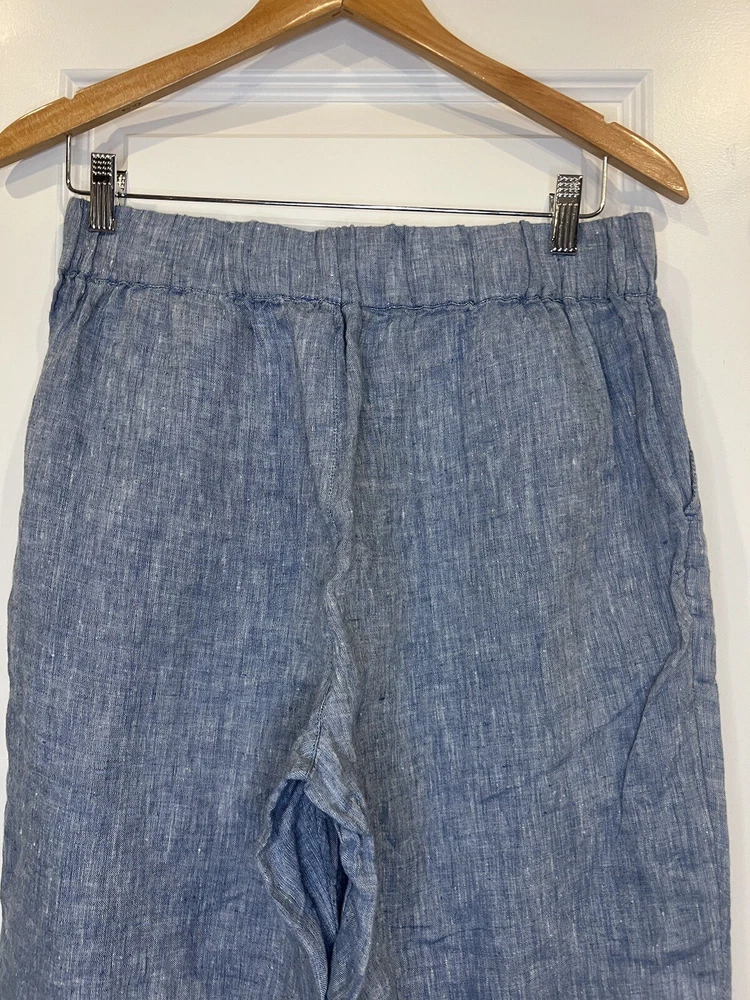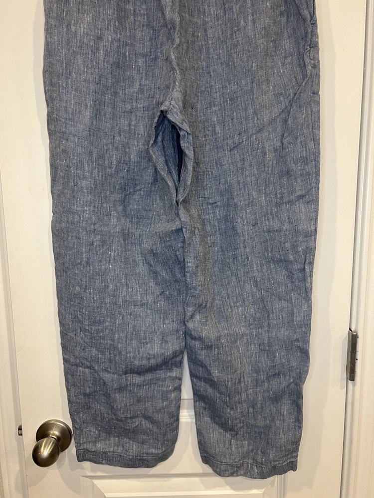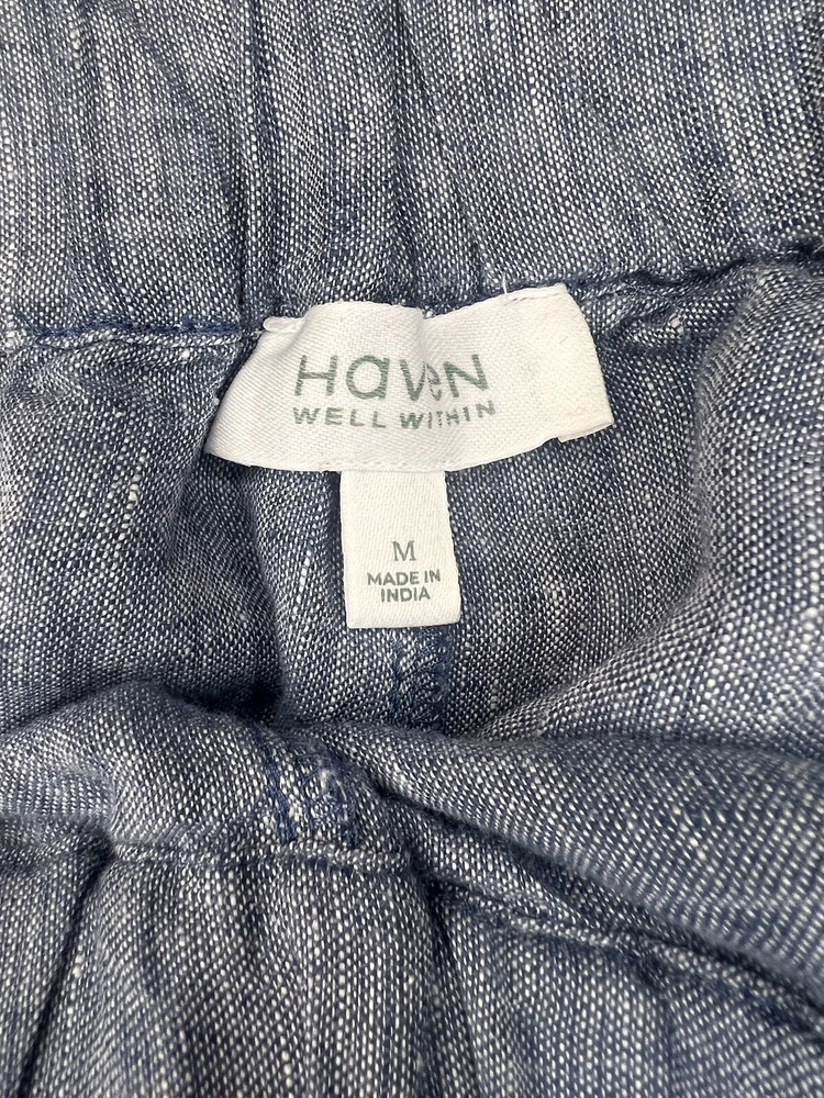 These Haven Well Within Linen Pants in size Medium are a stylish and comfortable choice for various occasions such as travel, casual outings, or workwear. Designed with a high-rise and ankle length, they feature an elastic waist for easy wear and pockets for added convenience. The blue color and solid pattern give off a beachy and bohemian vibe, perfect for summer, fall, or spring. Made from knit linen fabric, these straight-leg pants offer a relaxed fit suitable for regular use.