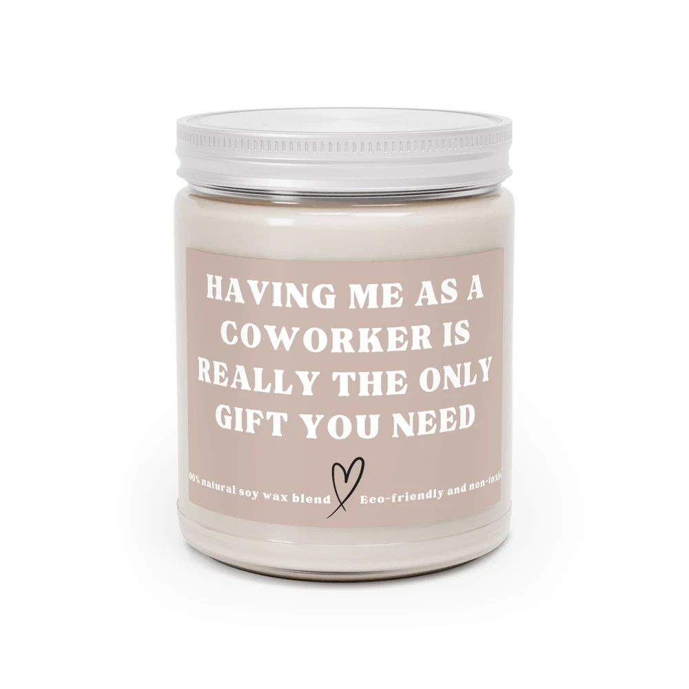 Having Me As A Coworker Scented Soy Candle 9oz Gift for Her Him Birthday Funny This scented candle comes in 3 different scents - Vanilla Bean, Comfort Spice, and Sea Breeze. *Candles are made on demand. 2-3 business days production time and 3-5 business days U.S. Shipping time. ***Before leaving any negative feedback, please reach out so we can make things right. 9oz Diameter, in 2.80 Height, in 3.50