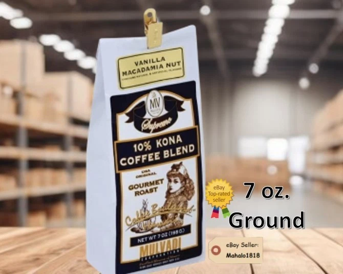 MADE IN HAWAII COFFEE VANILLA MACADAMIA NUT COFFEE The Hawaii Coffee (Vanilla Macadamia Nut) is a fresh roasted coffee from the renowned Hawaii's Coffee brand. This unique blend captures the distinct flavors of Hawaii with a hint of vanilla and macadamia nuts, making it a delicious addition to your pantry. Whether you enjoy brewing a fresh cup of coffee at home or stocking up on delicious ground beans, this product offers a satisfying and aromatic experience for any coffee lover. Fast shipping. Purchase with confidence from a trusted eBay seller! Shipped with USPS Ground advantage Mail 3-5 Business days..
