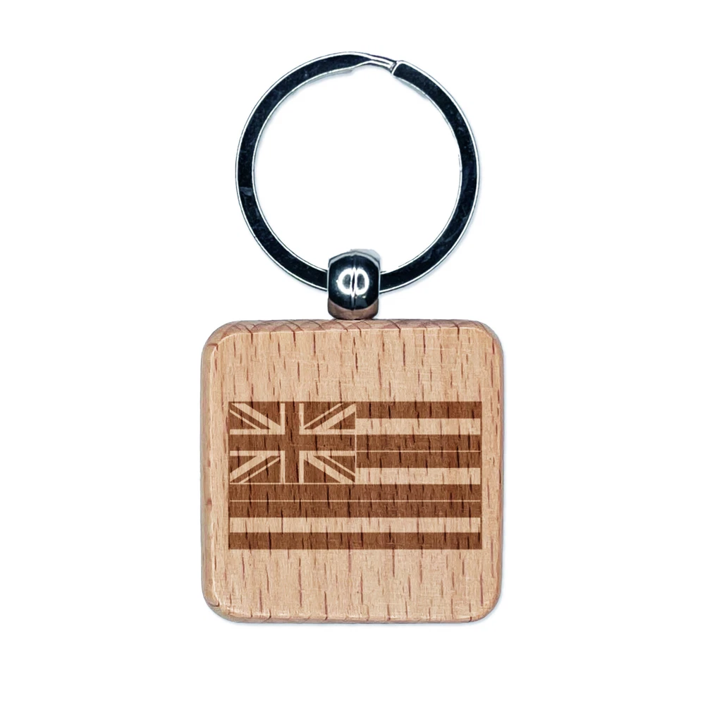 Hawaii State Flag Engraved Wood Square Keychain Tag Charm