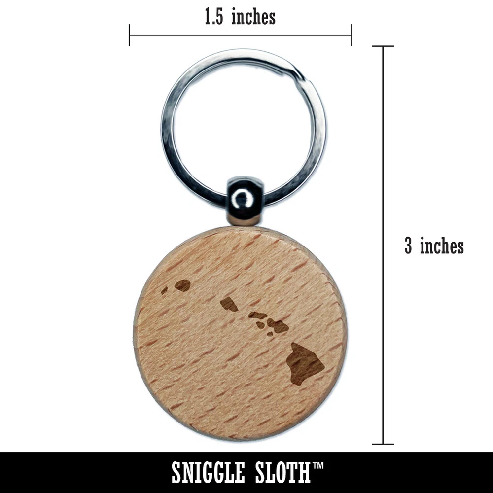Hawaii State Silhouette Engraved Wood Round Keychain Tag Charm