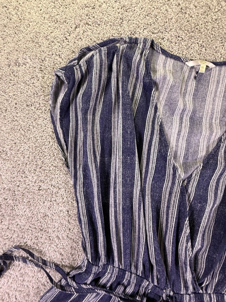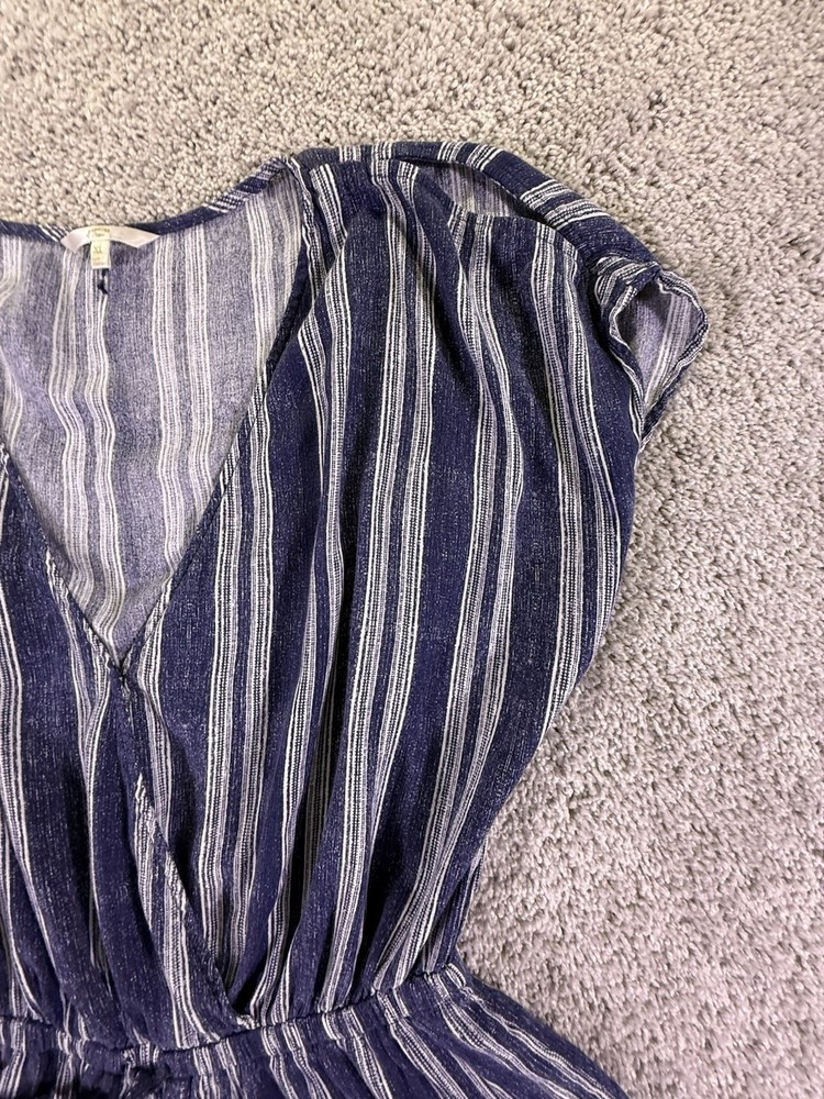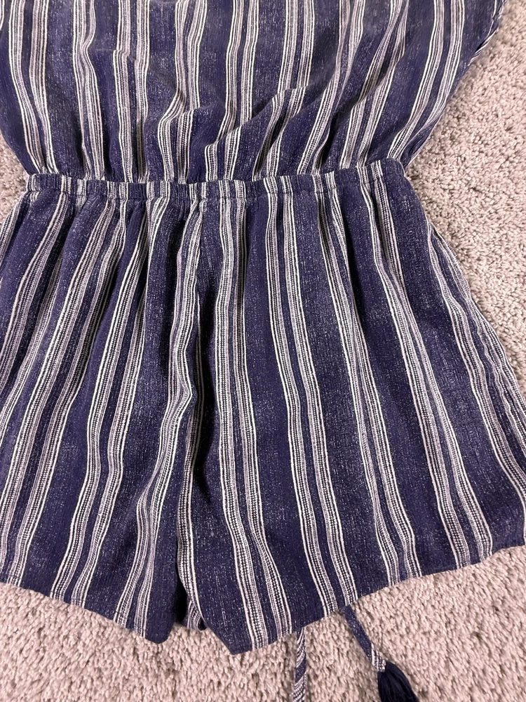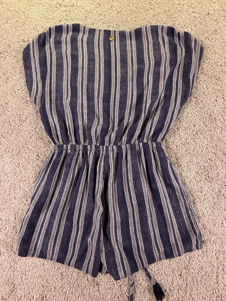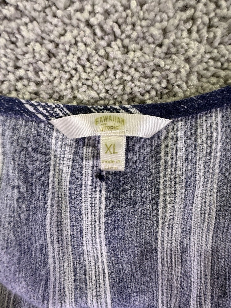 The Hawaiian Tropic Women's Romper in blue and white stripes is a stylish and comfortable one-piece outfit designed for women in size XL. Made from a polyester blend, this pullover romper features a regular fit, making it a versatile and easy-to-wear option for any tropical-themed occasion. Machine washable for convenience, this romper from the Hawaiian Tropic brand is perfect for adding a touch of island-inspired flair to your wardrobe. 5955