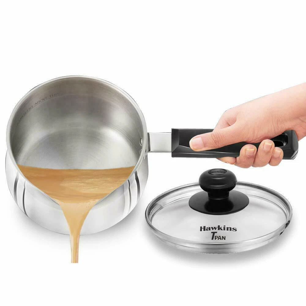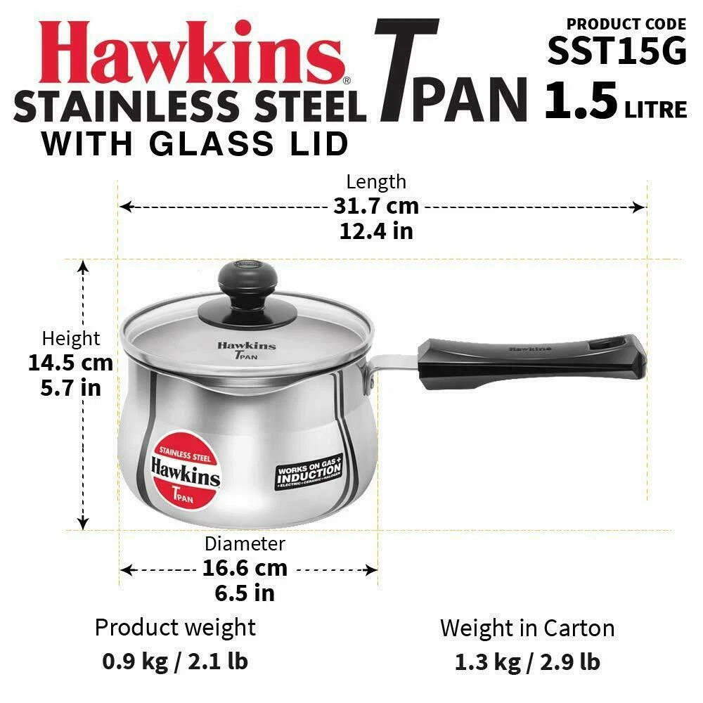 Hawkins Stainless Steel Tpan 1.5 Lt with Glass Lid, Tea Pan, Induction Saucepan
