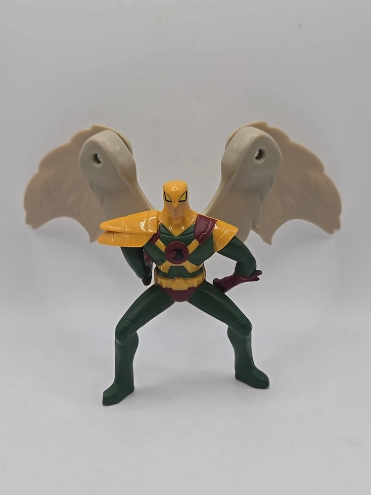 This McDonald's Happy Meal spring action figure features the iconic superhero Hawkman from the Justice League of DC Comics. The 4.5-inch plastic figure comes with spring action wings and is an original licensed reproduction. It is perfect for fans of comic book heroes and collectors of action figures. The figure is made in China and is part of the Toys & Hobbies category, specifically Action Figures & Accessories. It is a great addition to any collection and is sure to bring joy to children and adults alike. Get your hands on this limited edition Hawkman figure today!