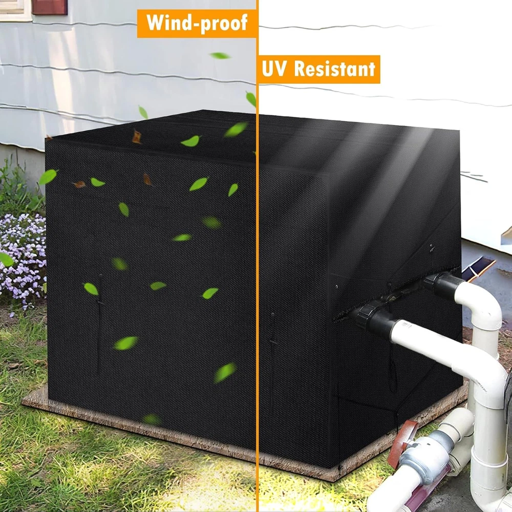 Outdoor Pool Heater Cover for Hayward,Winter 39.7 x 33.8 x 30.7 inches, Black Product Details Closure Type: Drawstring Strap Type: Drawstring Manufacturer: Svepndic Part Number: GI-Pool Heat Pump Cover Item Weight: 1.3 pounds Country of Origin: China Size: 39.7 x 33.8 x 30.7 inches Style: Custom Pattern: Solid Shape: Rectangular Item Package Quantity: 1 Special Features: Waterproof Batteries Included?: No Batteries Required?: No Material: Polyvinyl Chloride (PVC) Color: Black Brand: Svepndic Item Weight: 0.59 Kilograms Water Resistance Level: Waterproof Oxford material: Our pool heat pump cover is made of oxford cloth, which is sturdy and quality, with premium waterproof PVC inner layer. It can keep its original appearance after long-term use, and won’t crack Universal size: The heat pump cover is 39.7" x 33.8" x 30.7" , fits most of heat pumps to protect your pool heat pump from natural damage. It works well even in bad weather, so you don't have to worry about it Easy to use and store: Elastic opening design of the cover that allows wiring and ducting to pass through for take on or off easily, and the pool heat cover also comes with a small storage bag for easy storage Protect your pool heat pump: Heat pump cover’s originally designed structure is conducive to the diffusion of water vapor. The swimming pool heat pump cover itself has 8 drawstrings, which can be adjusted casually to cover the entire surface of the machine tightly, to better protect the heat pump Wide application: The pool heat pump cover can be used to protect the pool heat pump, it can also be used for suitable small stoves, air conditioners, boxes or outdoor fountains and so on