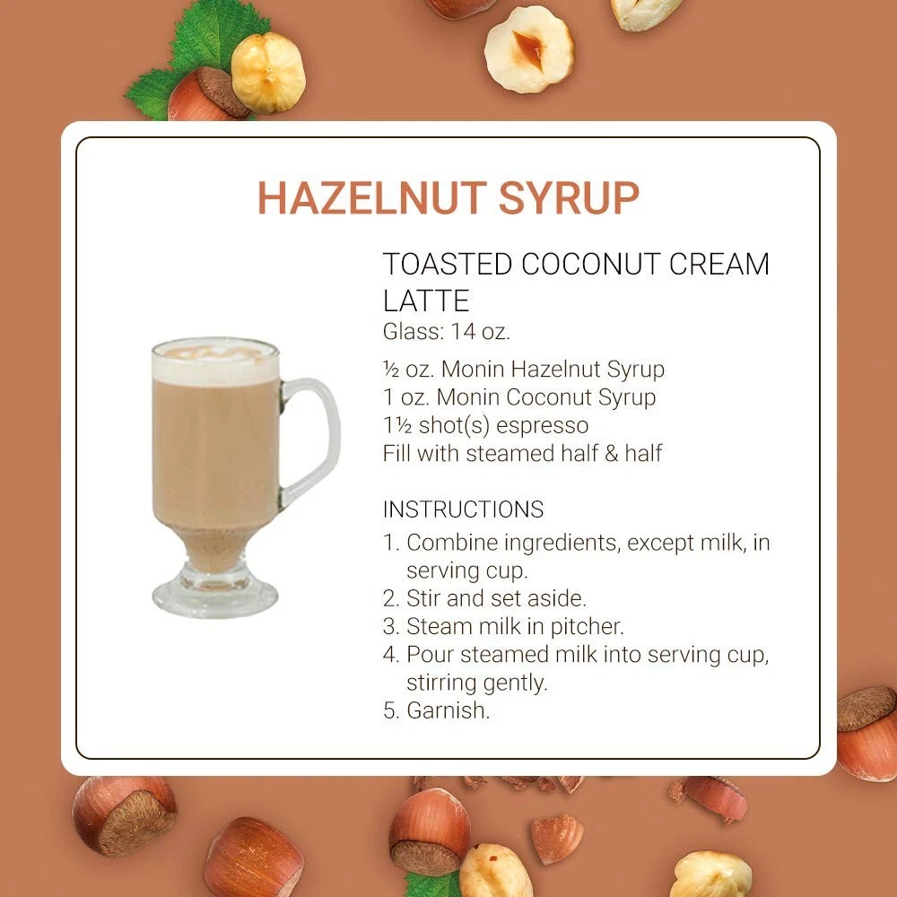 Hazelnut Syrup, Nutty Taste of Caramelized Hazelnut, Natural Flavors, Great for Mochas, Lattes, Smoothies, Shakes, and Cocktails, Non-GMO, Gluten-Free 1 Liter, 4-Pack GREAT FOR MOCHAS, LATTES, SMOOTHIES, SHAKES AND COCKTAILS: Our Hazelnut Syrup perfects a wide range of beverages. From mochas and lattes to smoothies, shakes and cocktails, or for coffees and chocolates, the nutty taste of caramelized hazelnut is a culinary and beverage mainstay. TASTING NOTES: This versatile flavor adds rich, nutty goodness to any drink. Relish in the nutty hazelnut aroma while enjoying the raw hazelnut flavor of rich caramelized notes. SPECIFICATIONS: Dairy Free, Gluten Free, Halal, Kosher, No Artificial Colors, No Artificial Flavors, No Artificial Ingredients, No Artificial Preservatives, No Artificial Sweeteners, Non-GMO, & Clean Label SYRUP TO SUPPORT BEE COLONIES: Colony Collapse Disorder is greatly reducing bee populations worldwide. Our syrup recycling initiative has been sending waste syrup to feed bees since 2008, and has fed over 374 billion bees! GREEN PACKAGING & LABELING: With BPA free bottles, 100% recyclable boxes comprised of 30% recycled content, printed with biodegradable water-based ink containing zero pollutants, and pulp inserts, we’re doing our part for the environment. Raw hazelnut flavor with rich caramel notes makes for the perfect added flavor profile to any latte, mocha, or specialty cocktail. Our Hazelnut syrups are always dairy-free, gluten-free, Halal, Kosher, contain no artificial ingredients, are non-GMO.