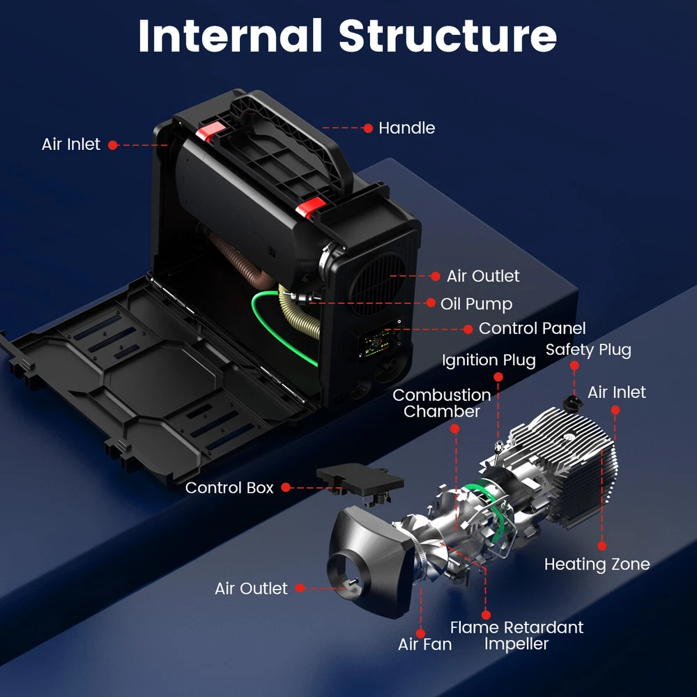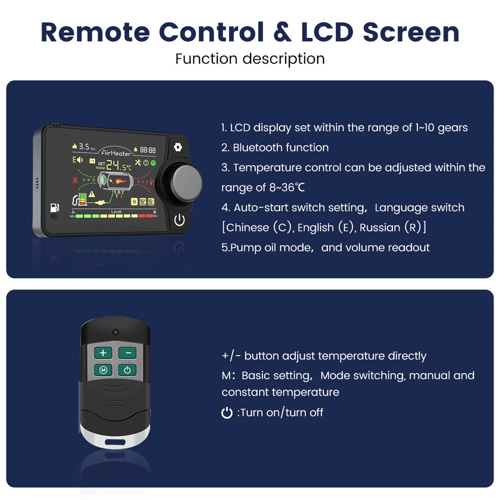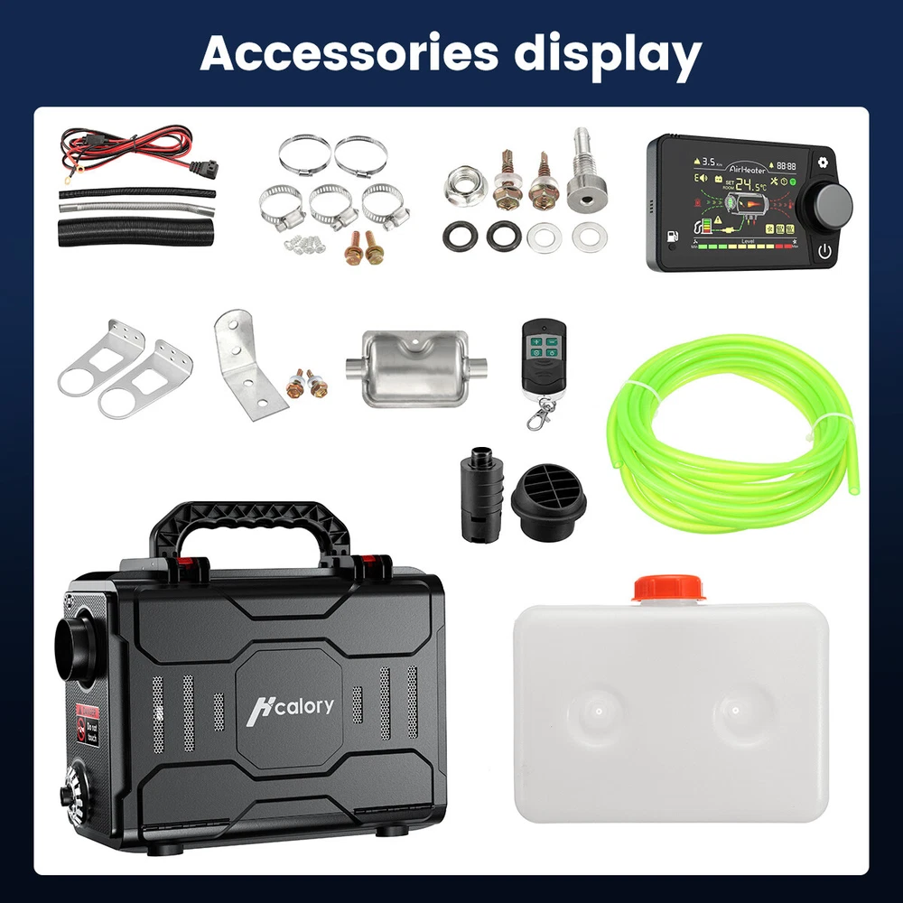 Similar Items Description Features: 1. Suitable for all 12V Universal diesel vehicles; it can be used for cab heating of various vehicles such as trucks, vans, battery cars, etc., to eliminate window frost; 2. 5KW power adjustable to meet different needs; 3. Easy to Carry & Install Designed as a suitcase, can be easy to carry in outdoors. Compact structure, easy to install and disassemble. 5. Environmental products, low emissions, low fuel consumption; 6. The volatilization technology, the fuel is heated and evaporated into gas through the ceramic spark plug, the ignition is fast and the combustion is sufficient; 7. bluetooth app remote switch (optional); 8.The use of advanced automatic control technology, with abnormal operating conditions reliable; 9.Technology Volatile, by ceramic ignition socket the fuel heating evaporates into gas, rapid ignition, complete combustion; 10.Fuel, electricity, temperature can be set arbitrarily. Smarter - Download the "airheaterble" App, available for iOS and Android devices, which enables user to remotely control t he heater via Bluetooth. You can preheat and defrost the outdoor vehicle in advance without leaving your home Specifications: Brand:Hcalory Type:Air Diesel Heater Model:bluetooth model Color:Black Configuration fuel tank: 5L Rated power: 5KW Rated voltage: 12V Fuel consumption: 0.1 liters - 0.35 liters/hour Remote control effective distance: 100 meters Radiator working temperature: -40~+50°C Operating temperature of oil pump: -40~+40°C Packaged included: 1 x Car heater 1 x Remote control 1 x Silencer 1 x Tubing 1 x Harness 1 x Wind head 1 x Air Filter 1 x Exhaust pipe 1 x Inlet air pipe 1 x Outlet air pipe 1 x Fuel Tank 1 set Screw accessory kit Note: 1. Please allow 0.5-1 cm differences due to manual measurement. 2. Due to the light and screen difference, the item's color may be slightly different from the pictures. #divSKUDetail2 Detail Image Payment 1.We accept Payoneer、PayPal、Mastercard、VISA、Google Pay 、American Express etc. 2.All major credit cards are accepted through secure payment processor. 3.Payment must be received within 7 business days of auction closing. 4.We ship to your eBay or payment address. Please make sure your eBay and payment address is correct before you pay. Shipping 1.We ship to your eBay or Paypal address. Please make sure your eBay and Paypal address is correct before you pay. 2.Items will be shipped within 1-3 business day when we received payment. 3.Delivery time depends on destination and other factors;