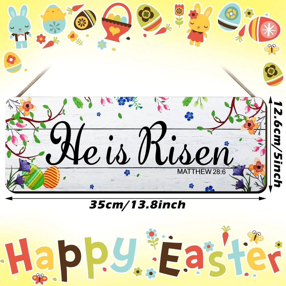 He Is Risen Sign 2 Pieces Easter Hanging Door Decorations Wood Easter Door Hanger Easter Religious Sign Easter Blessings Wood Hanging Plaque for Wall Wreaths Spring Home Front Door Wall Decor Product Details Brand: Yookeer Material: Wood Theme: Family Mounting Type: Door Mount,Wall Mount Product Dimensions: 11.8"L x 5"W Shape: Rectangular Style: Sturdy Product Dimensions: 11.81 x 5 x 0.01 inches Item Weight: 10.5 ounces Manufacturer: Yookeer Country of Origin: China Item model number: KY-Yookeer-1666 Printed Inspiring Words: the easter religious decorations are printed with the letter [He Is Risen], [Easter Blessings] that meaning hope, happiness, new life is coming, which are in line with the theme of Easter Easter Elements Design: the wood Easter decorations are embellished with Easter egg, blooming grass flowers, and cross, using them as decorations will brighten the intense festival atmosphere of your home and party Basic Information: these outside Easter decorations are made of wood, which are sturdy, firm, not easy to flake off, rot or break, offering you long time application; They measure approx. 30 x 12.7 x 0.6 cm/ 11.8 x 5 x 0.24 inches, allowing you to hang them in the places you want as attractive decors Easy to Install: the wooden Easter door hangers come with ropes, you can just hang them on the door wall or other surface, which will be a highlight to the whole environment, leaving a deep impression on your guests Package Contains: you will receive 2 different styles of Wooden easter wall decors, which will meet your holiday using and replacement demands, making your easter party more exciting and impressive in seconds Features: The rustic Easter wall decorations are about 11.8 x 5 x 0.24 inches, lightweight, and proper size allows you to hang them on many places, and the worry that they may fall off is unnecessary, therefore you can apply them for home or party adornment with confidence. These Easter wall hanging plaque signs are printed with many words related to Easter, a nice way for your families to welcome the approaching of the spring, which can not only work as decorations but also convey your wishes and greetings. Specifications: Material: wood Color: as shown in the picture Size: approx. 11.8 x 5 x 0.24 inches (L x W x T) Package includes: 2 x Easter wall hanging plaque signs Note: Manual measurement, please allow slight errors on size. The colors may exist slight differences due to different screen displays. Avoid storing them in wet condition. The words on the product are only decorative and are not applied as trademarks.
