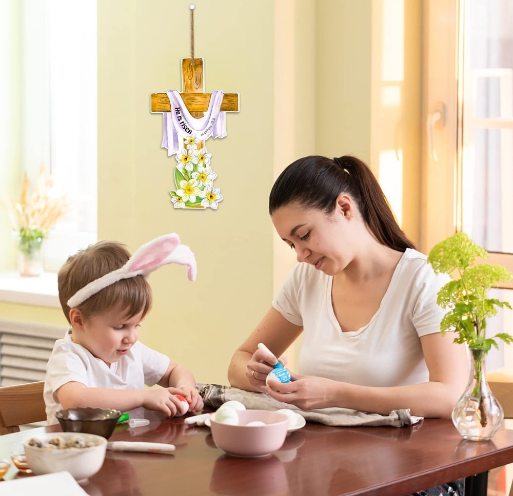 FaCraft He is Risen Door Sign 8.5"x14.5" Religious Easter Door Decorations Easter Cross Hanger Signs for Door Wall Home Indoor Outdoor Spring Decor Product Details Color: E-Lily Brand: FaCraft MPN: Easter Door Sign-2-18 UPC: Does not apply EAN: Does not apply Color: E-Lily Brand: FaCraft Material: Polyvinyl Chloride Theme: Easter,Religious Mounting Type: Door Mount,Wall Mount Product Dimensions: 14.5"L x 8.5"W Shape: Flower Light Type: Neon Style: Farmhouse Item Weight: 3.84 ounces Manufacturer: FaCraft Item model number: Easter Door Sign-2-18 Size: He is risen door signs measure 8.46"x 14.5"x 0.2 Flower Religous Cross Design: The he is risen sign features" a cross of jesus with sprout life",flower is symbolize of life and hope,you can put it on the front door,window,wall,and also add on to a wreath,creat a strong festiver atmosphere for your easter party. Heavy Quality Material: Easter hanger sign made of quality PVC board,safe and harmless,not easy to damage,it can use for a long time. Easy To Hang: Easter door sign with a jute rope,easy to hanging on the door to celebrate Easter or Spring,great for Easter door decoration and Spring decor sign. Easter Decorations: Hang it on your door, wall, window bedroom, kitchen, bathroom, and living room to meet spring coming and commemorate the festival of Christ. FaCraft He is Risen Door Sign Religious Easter Door Decorations Easter Cross Hanger Signs for Door Wall Wreaths Home Farmhouse Indoor Outdoor Spring Decorations