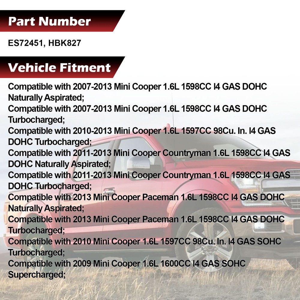 [100% Brand New] - Driver And Passenger Side Assembly Pair In Box [Fully Plug & Play] - No Rewiring Necessary [Whats Included] - Headlight Housing Only; No Bulbs Included [SAE DOT Approved] - Meets All Regulations In USA & Canada Only [60 Days Love It or Return It] - Money Back Guarantee Free Shipping 100% Quality Guarantee 30-Days Moneyback Rev up your ride with top-quality auto parts at our one-stop automotive store! Store Categories Head Bolts Fits for 07-12 Mini Cooper Countryman Turbo 1.6L DOHC N12 N14 N16 N18B16. This cylinder head bolt set is just what you need to keep your car in good running order. The cylinder head bolts that you will receive in this kit are high quality head bolts that the dealers and rebuilding shops use every day. So do not settle for lesser quality parts when it comes to engine repair. These cylinder head bolts are designed for the professional installer. It does not come with any installation instructions. If you do not have a service manual, please consult a professional mechanic prior to installing the cylinder head bolts. Features: Increase stability and control for enhanced driving experience Made from excellent quality materials and manufactured to the highest quality specifications Design with exacting tolerances increased durability Properly torque bolts per manufactures specifications Application-specific design ensures correct fitment Follow manufacturers recommended tightening sequence, and procedures for head bolt replacement Fitments YEAR MAKE MODEL ENGINE 2011-2013 MINI COOPER COUNTRYMAN 1.6L 1598CC L4 DOHC TURBOCHARGED (16 VALVE), ENG. CODE "N12B16, N14B16, N16B16, B18B16" 2011-2013 MINI COOPER COUNTRYMAN 1.6L 1598CC L4 DOHC (16 VALVE), ENG. CODE "N12B16, N16B16" 2013 MINI COOPER PACEMAN 1.6L 1598CC L4 DOHC TURBOCHARGED (16 VALVE), ENG. CODE "N12B16, N14B16, N16B16, B18B16" 2013 MINI COOPER PACEMAN 1.6L 1598CC L4 DOHC (16 VALVE), ENG. CODE "N12B16, N16B16" 2010-2013 MINI COOPER 1.6L 1597CC 98CID L4 DOHC TURBOCHARGED (16 VALVE), ENG. CODE "N12B16, N14B16, N16B16, B18B16" 2010 MINI COOPER 1.6L 1597CC 98CID L4 SOHC TURBOCHARGED (16 VALVE), ENG. CODE "N12B16, N14B16, N16B16, B18B16" 2007-2013 MINI COOPER 1.6L 1598CC L4 DOHC TURBOCHARGED (16 VALVE), ENG. CODE "N12B16, N14B16, N16B16, B18B16" 2007-2013 MINI COOPER 1.6L 1598CC L4 DOHC (16 VALVE), ENG. CODE "N12B16, N16B16" 2009 MINI COOPER 1.6L 1600CC L4 SOHC SUPERCHARGED (16 VALVE), ENG. CODE "N12B16, N14B16, N16B16, B18B16" Items Included 13 Cylinder Head Bolts (10 Long Bolts, 2 Short Bolts, 1 Small Bolt) ABOUT AUTOTO Welcome to AUTOTO, your one-stop shop for automotive parts! We specialize in providing high-quality components for cars. With our extensive range of products, you can find everything you need to keep your vehicles running smoothly. Our number one goal is to provide the best online shopping experience for our customers. SHIPPING Orders are shipped from our warehouses located in Kentucky and New Jersey depending on availability. AUTOTO offers free shipping with free return on orders purchased within the 48 US States, excluding PO Box, Military APO/FPO, Hawaii, Alaska, Puerto Rico, Virgin Islands, and Guam. RETURNS Not satisfied with your purchase in any way? Return it for a full refund within 30-days. VIP BENEFITS We will open VIP customer treatment, if you meet the following conditions, please take the initiative to contact us 1.You are a wholesaler or retailer 2.You are equipment maintenance factory 3.You are an audiophile or heavy user 4.You have purchased products from our store/brand, have good experience and want to purchase again. Tell us and you will get different levels of coupons and one-on-one customer service! ABOUT VIPMOTOZ Based in Southern California, VipmotoZ has been in the aftermarket autoparts industry since 2012. Our number one goal is to provide the best online shopping experience for our customers. Love It or Return It. SHIPPING Orders are shipped from our warehouses located in California and South Carolina depending on availability. VipmotoZ offers free shipping with free return on orders purchased within the 48 US States, excluding PO Box, Military APO/FPO, Hawaii, Alaska, Puerto Rico, Virgin Islands, and Guam. RETURNS Not satisfied with your purchase in any way? Return it for a full refund within 60-days. CONTACT US Got a question, need a return/exchange or recommendation on a product? AUTOTO customer service team is here to help! AFTER SERVICE We are committed to providing high-quality, sustainable use of the product, but due to the diversity of product models, the complexity of the use of the scene, the differences in the conditions of transportation, it is still unavoidable to produce after-sales problems, but please rest assured that we will strive to give solutions; Message Us On Apr 25, 2025 at 04:43:00 PDT, seller added the following information: