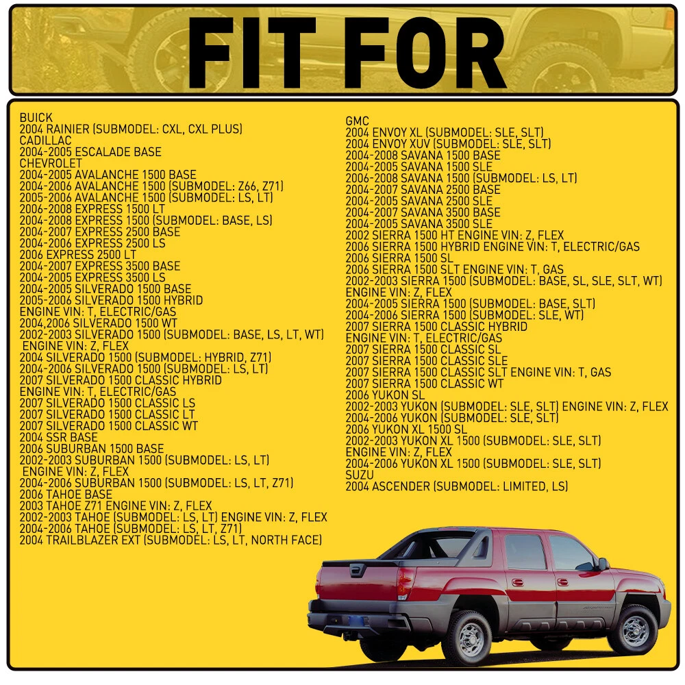 Fits for: Buick 2004 Rainier (submodel: CXL, CXL Plus) Cadillac 2004-2005 Escalade Base Chevrolet 2004-2005 Avalanche 1500 Base 2004-2006 Avalanche 1500 (submodel: Z66, Z71) 2005-2006 Avalanche 1500 (submodel: LS, LT) 2006-2008 Express 1500 LT 2004-2008 Express 1500 (submodel: Base, LS) 2004-2007 Express 2500 Base 2004-2006 Express 2500 LS 2006 Express 2500 LT 2004-2007 Express 3500 Base 2004-2005 Express 3500 LS 2004-2005 Silverado 1500 Base Head Gasket Set Kit Fit 2004-06 Chevrolet Avalanche 1500 1500 Express 2500 3500 Fits for: Buick 2004 Rainier (submodel: CXL, CXL Plus) Cadillac 2004-2005 Escalade Base Chevrolet 2004-2005 Avalanche 1500 Base 2004-2006 Avalanche 1500 (submodel: Z66, Z71) 2005-2006 Avalanche 1500 (submodel: LS, LT) 2006-2008 Express 1500 LT 2004-2008 Express 1500 (submodel: Base, LS) 2004-2007 Express 2500 Base 2004-2006 Express 2500 LS 2006 Express 2500 LT 2004-2007 Express 3500 Base 2004-2005 Express 3500 LS 2004-2005 Silverado 1500 Base 2005-2006 Silverado 1500 Hybrid Engine VIN: T, ELECTRIC/GAS 2004,2006 Silverado 1500 WT 2002-2003 Silverado 1500 (submodel: Base, LS, LT, WT) Engine Vin: Z, FLEX 2004 Silverado 1500 (submodel: Hybrid, Z71) 2004-2006 Silverado 1500 (submodel: LS, LT) 2007 Silverado 1500 Classic Hybrid Engine VIN: T, ELECTRIC/GAS 2007 Silverado 1500 Classic LS 2007 Silverado 1500 Classic LT 2007 Silverado 1500 Classic WT 2004 SSR Base 2006 Suburban 1500 Base 2002-2003 Suburban 1500 (submodel: LS, LT) Engine Vin: Z, FLEX 2004-2006 Suburban 1500 (submodel: LS, LT, Z71) 2006 Tahoe Base 2003 Tahoe Z71 Engine Vin: Z, FLEX 2002-2003 Tahoe (submodel: LS, LT) Engine Vin: Z, FLEX 2004-2006 Tahoe (submodel: LS, LT, Z71) 2004 Trailblazer EXT (submodel: LS, LT, North Face) GMC 2004 Envoy XL (submodel: SLE, SLT) 2004 Envoy XUV (submodel: SLE, SLT) 2004-2008 Savana 1500 Base 2004-2005 Savana 1500 SLE 2006-2008 Savana 1500 (submodel: LS, LT) 2004-2007 Savana 2500 Base 2004-2005 Savana 2500 SLE 2004-2007 Savana 3500 Base 2004-2005 Savana 3500 SLE 2002 Sierra 1500 HT Engine Vin: Z, FLEX 2006 Sierra 1500 Hybrid Engine VIN: T, ELECTRIC/GAS 2006 Sierra 1500 SL 2006 Sierra 1500 SLT Engine Vin: T, GAS 2002-2003 Sierra 1500 (submodel: Base, SL, SLE, SLT, WT) Engine Vin: Z, FLEX 2004-2005 Sierra 1500 (submodel: Base, SLT) 2004-2006 Sierra 1500 (submodel: SLE, WT) 2007 Sierra 1500 Classic Hybrid Engine VIN: T, ELECTRIC/GAS 2007 Sierra 1500 Classic SL 2007 Sierra 1500 Classic SLE 2007 Sierra 1500 Classic SLT Engine Vin: T, GAS 2007 Sierra 1500 Classic WT 2006 Yukon SL 2002-2003 Yukon (submodel: SLE, SLT) Engine Vin: Z, FLEX 2004-2006 Yukon (submodel: SLE, SLT) 2006 Yukon XL 1500 SL 2002-2003 Yukon XL 1500 (submodel: SLE, SLT) Engine Vin: Z, FLEX 2004-2006 Yukon XL 1500 (submodel: SLE, SLT) Isuzu 2004 Ascender (submodel: Limited, LS) Specifications: OE:HGS3168, HS26191PT1 Material:Metal, Rubber, Multiple Layers Steel Head Gasket Features: *High technology The gasket has a non-viscous hard-wearing layer and good sealing innovation and technology to ensure that it can withstand the harsh conditions of the engine compartment and maintain the best operation. *Accurate design Manufactured according to your original car for matching your vehicle perfectly. *Safety ensurance The head gaskets kit seals securely, prevents leakage of liquids and gases to the valve train and effectively protect the safety of cylinder engine parts. *Note Professional installation is highly recommended!!(without instruction book) Packaging include: 1*Engine Gasket Set (as shown in the picture???/p> Item Specifics Brand : AUXITO Manufacturer Part Number : HGS3168, HS26191PT1 Manufacturer Warranty : 2 Years OE/OEM Part Number : HGS3168, HS26191PT1 Interchange Part Number : HGS3168, HS26191PT1 Material : Metal, Rubber, Multiple Layers Steel Head Gasket Fitment Type : Direct Replacement Kit or Single Part : Kit Type : Engine Gasket Set Placement on Vehicle : Front Greasable or Sealed : Sealed Universal Fitment : No Placement on Vehicle : Front Greasable or Sealed : Sealed Universal Fitment : No Payment (1) Instant PayPal payment is the preferred method of payment. (2) We also accept payment via PayPal, DebitCard, Visa, MasterCard, Discover. (3) We will only ship to the confirmed PayPal shipping address given with the payment. (4) If you want to ship to other address, please change your PayPal shipping address before you make payment. (5) To avoid initiating an unpaid item claim, please pay within 7 days. Shipping (1) We will ship your item(s) within 24 hours. (2) We ship this item to US usually via USPS first class mail. It usually takes 3-6 working days to deliver. Returns (1) We offer free return & money back guarantee. If you are not satisfied with your purchase for any reasons, you can return the item for refund or replacement/exchange. All returns must include the original packaging. (Please refer to our return policy for details.) (2) If you don't return goods within 60 days from date of purchase, your right to cancel will be revoked. Any items damaged because of incorrect installation will not be refunded. Please contact us for return or troubleshooting help prior to returning any products. (3) Unauthorized reselling of AUXITO products is strictly prohibited and we can't honor the warranty if purchasing from the unauthorized reseller. Contact Us [Our office hours are MONDAY - Saturday 9:00PM - 6:00PM PST, but we will response you once we get your message .There will be some delay on respons if you send message or E-Mail on Sundy.] (1).Negative feedback will not help resolve any problems you have, please contact us via eBay messages before leaving negative feedback, our customer service will make best effort to help you with the issues. (2).We maintain high standards of excellenceand strive for 100% customer satisfaction! Feedback is very important to us. We request that you contact us immediately BEFORE you give us neutral or negative feedback, so that we can satisfactorily address your concerns. FAQ Why