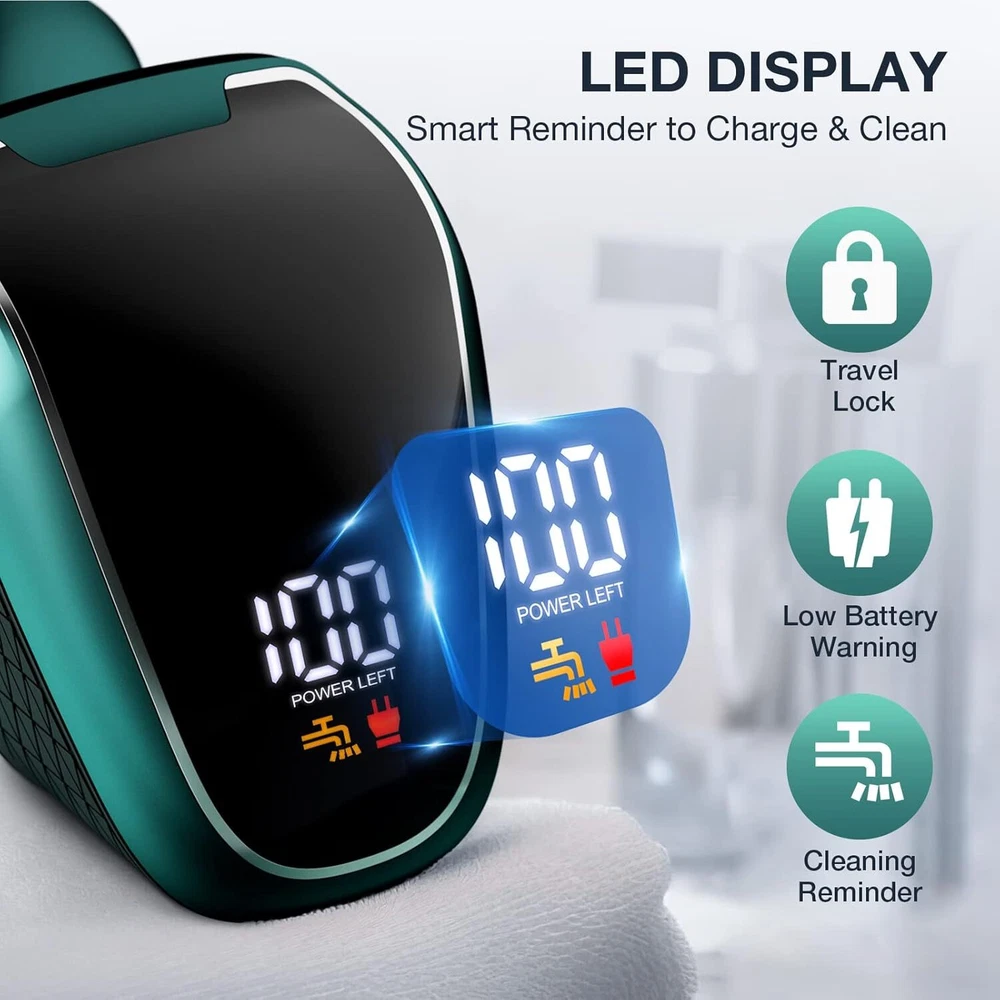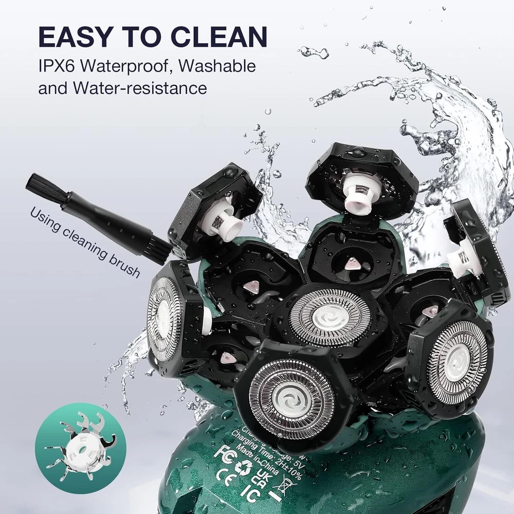 Recommended Uses For Product Beard Special Feature Dry Shave, Anti-Scratch, Cordless, Ergonomic Design, Battery Indicator Power Source Battery Powered Model Name OP-002G About this item 7D Floating Shaving Head: The upgraded version of the 7D floating shaving system is ergonomically designed.The design of 7 cutter heads increases the shaving area and saves shaving time. Our shaver is designed with a non-slip handle for easy gripping, a great choice for your shaved heads. Please regularly clean the hair in the shaver head Double Blade and Double Protective Net: Men’s bald head shaver uses double-layer durable blade to accurately capture long and short hairs, which are precise, sharp and safe. The double net provides protection and reduces irritation. The intelligent induction system effectively prevents hair pinching and brings you a comfortable and smooth shaving experience 5 in 1 Professional Grooming Kit: Wyklaus men's electric shaver includes one head shaver, hair trimmer, nose hair trimmer, cleansing brush, sideburn trimmer, hair trimmer combs(3 5 7mm) and USB cable. Different heads can meet any of your shaving, beauty and cleaning needs, suitable for home and travel, and convenient for your life. Please use the proper charging cord to charge the head shaver and charge it in time LED Intelligent Display: The bald head shaver for men with LED display can accurately show the percentage of the battery power. Low battery reminder, water washing reminder more intelligent. Long press the switch button for 3 seconds to trigger the travel lock to avoid additional power consumption. This electric shaver uses 600mAh large capacity battery, 2 hours of fast charging can provide 60 minutes of working time. Please charge it in time for regular use Waterproof and Wet and Dry: If you want a cleaner shaving experience, we recommend that you use shaving foam to soften the stubble before using our razor. The whole body of the shavers for men is IPX6 waterproof, offered you a comfortable dry shave or a refreshing wet shave with shaving foam. You can use the small brush provided for cleaning, which is easy to operate and easy to clean. This versatile shaving kit is a great gift for your husband or boyfriend