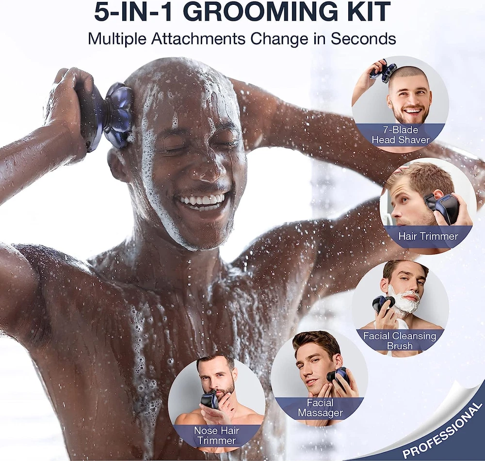 Store New Arrivals Add to Favorite View Feedback Contact Head Shaver 7D, Wyklaus Upgrade Head Shavers for Bald Men, Head Electric Razor with Nose Hair Trimmer, IPX6 Waterproof Wet/Dry Mens Grooming Kit, Anti-Pinch, LED Display, USB Rechargeable Description Item model number OP-002 Power Source Battery Powered Color 1-blue Product Dimensions 7.44 x 3.98 x 4.92 inches; 1.04 Pounds Country of Origin China Batteries 1 Lithium Ion batteries required. (included) Model Name Shaver Recommended Uses For Product Beard Special Feature Portable, Dry Shave, Waterproof, Wet, Detachable Head Brand Wyklaus Manufacturer Wyklaus 【7D Floating Shaving Head】The upgraded version of the 7D floating shaving system is ergonomically designed.The design of 7 cutter heads increases the shaving area and saves shaving time. Our shaver is designed with a non-slip handle for easy gripping, a great choice for your shaved heads. Please regularly clean the hair in the shaver head. 【Double Blade & Double Protective Net】Men’s bald head shaver uses double-layer durable blade to accurately capture long and short hairs, which are precise, sharp and safe. The double net provides protection and reduces irritation. The intelligent induction system effectively prevents hair pinching and brings you a comfortable and smooth shaving experience. 【5-in-1 Professional Grooming Kit】 Wyklaus men's electric shaver includes one head shaver, hair trimmer, nose hair trimmer, cleansing brush, sideburn trimmer, hair trimmer combs(3/5/7mm) and USB cable. Different heads can meet any of your shaving, beauty and cleaning needs, suitable for home and travel, and convenient for your life. Please use the proper charging cord to charge the head shaver and charge it in time. 【LED Intelligent Display】The bald head shaver for men with LED display can accurately show the percentage of the battery power. Low battery reminder, water washing reminder more intelligent. Long press the switch button for 3 seconds to trigger the travel lock to avoid additional power consumption. This electric shaver uses 600mAh large-capacity battery, 2 hours of fast charging can provide 60 minutes of working time. Please charge it in time for regular use. 【Waterproof and Wet & Dry】If you want a cleaner shaving experience, we recommend that you use shaving foam to soften the stubble before using our razor. The whole body of the shavers for men is IPX6 waterproof, offered you a comfortable dry shave or a refreshing wet shave with shaving foam. You can use the small brush provided for cleaning, which is easy to operate and easy to clean. This versatile shaving kit is a great gift for your husband or boyfriend. Product Description The video showcases the product in use. The video guides you through product setup. The video compares multiple products. The video shows the product being unpacked. Wyklaus‘s Other Recommended Products Add to Cart Add to Cart Add to Cart Add to Cart Add to Cart Customer Reviews 4.2 out of 5 stars 9,042 4.5 out of 5 stars 519 4.1 out of 5 stars 623 4.6 out of 5 stars 551 4.6 out of 5 stars 551 Price $49.99 $ 49 . 99 $19.99 $ 19 . 99 $49.99 $ 49 . 99 $49.99 $ 49 . 99 $49.99 $ 49 . 99 Areas of Focus Head/ face/Nose/Ear/Beard Head/ face Head/ face/Nose/Ear/Beard Head/ face/Nose/Ear/Beard Head/ face/Nose/Ear/Beard Water Resistance IPX6 Waterproof IPX6 Waterproof IPX6 Waterproof IPX6 Waterproof IPX6 Waterproof Floating Head 7D 7D 7D 7D 7D LED Power Display YES NO YES YES YES Accessories YES NO YES YES YES ABOUT US We offer the best prices around on high quality products. Our E-store includes media such as books, movies, music and games while offering electronics, toys, sporting apparel, clothing, tools, general home, garden items and more. SHIPPING We are always working hard to ensure your package arrives as soon as possible. Please understand that some factors like weather, high postal traffic, and the performance of shipping companies are outside of our control. We offer free shipping to the lower 48 states and ship within 2 business days of payment, usually sooner. We do not accept P.O. Boxes. Please provide a physical address. RETURNS We offer a 30-Day Return Policy on items which you are not completely satisfied with. You have the option for a full-refund or an exchange of the item. No returns are available on items shipped outside of the USA. PAYMENT We accept PayPal. CONTACT US This page content is yet to come Please ad us to your favorite seller and visit again later Thank You CUSTOMER SATISFACTION We try our very best to make sure every customer is completely satisfied. If there's a problem, message us! We're happy to help.